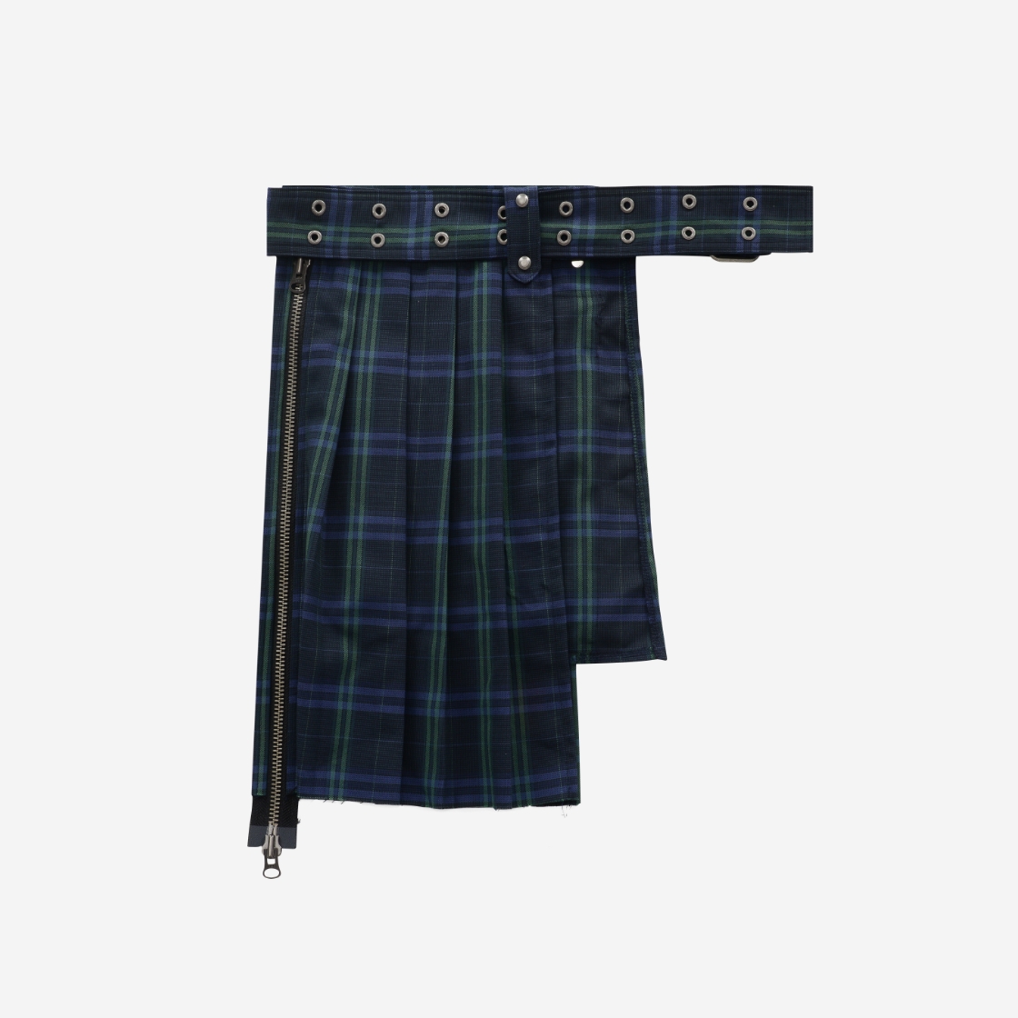 베이컨트 아카이브 바제스 레이어드 스커트 벨트 체크 블루