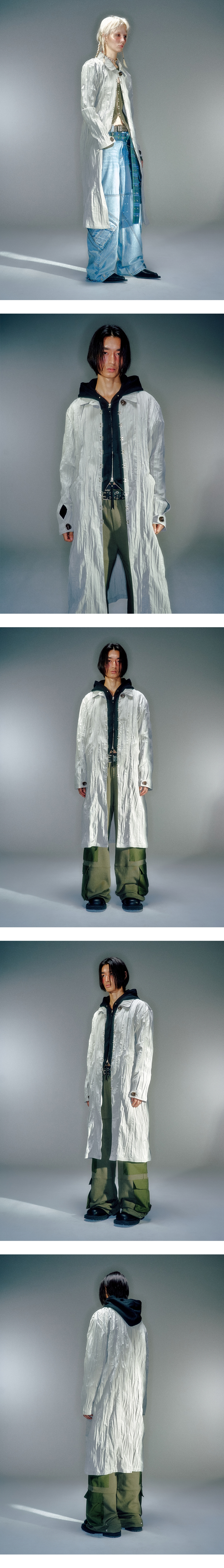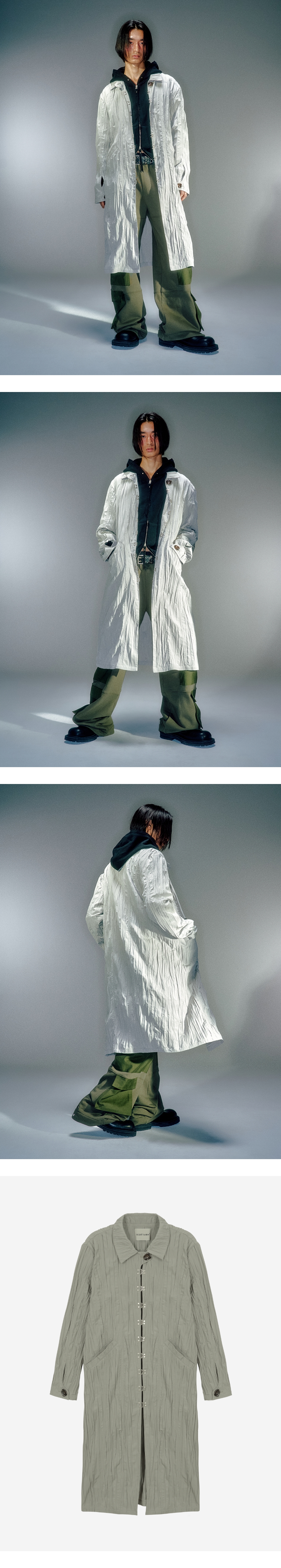 베이컨트 아카이브 유니섹스 하디드 링클 후크 코트 라이트카키