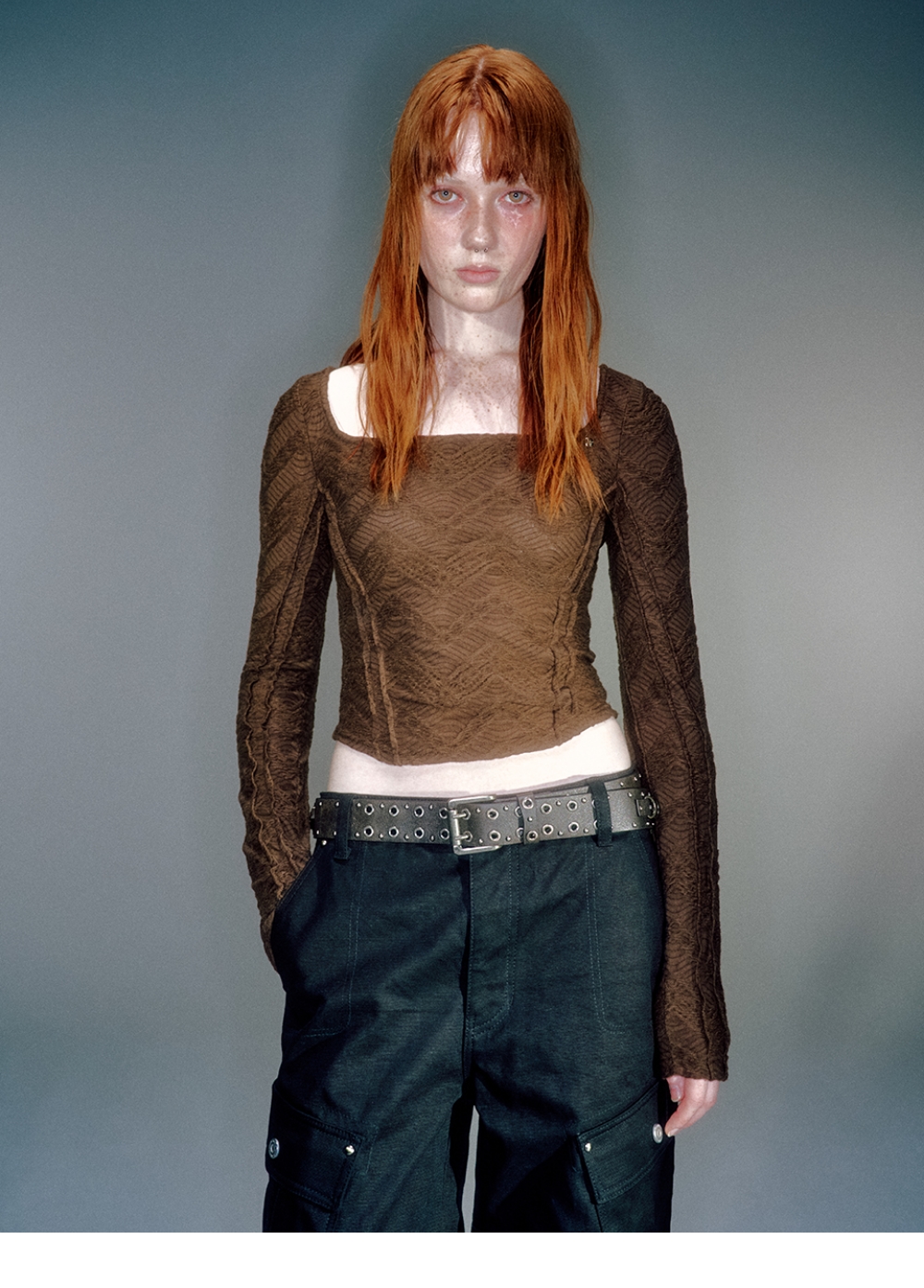 베이컨트 아카이브 우먼 베티 스퀘어넥 롱슬리브 탑 브라운
