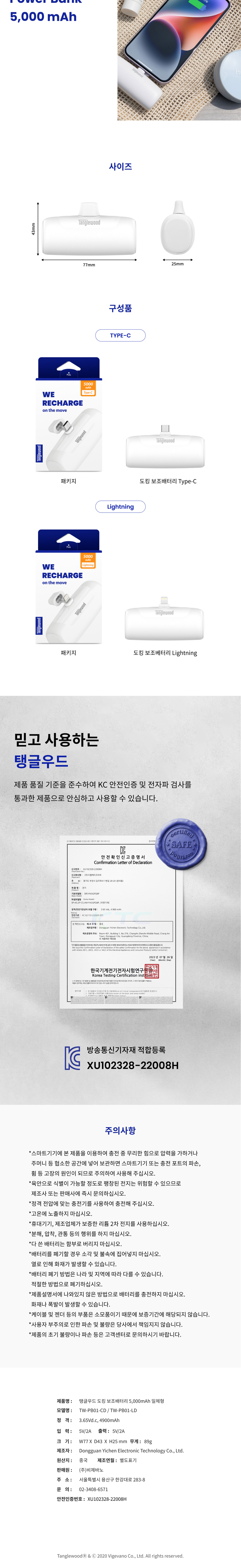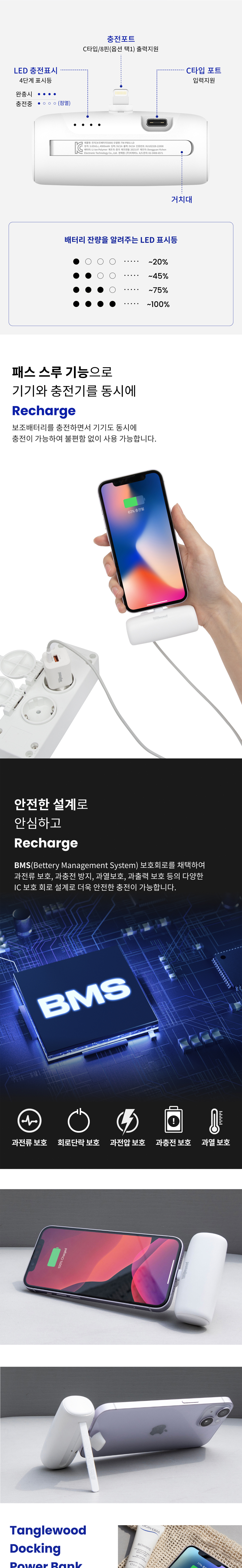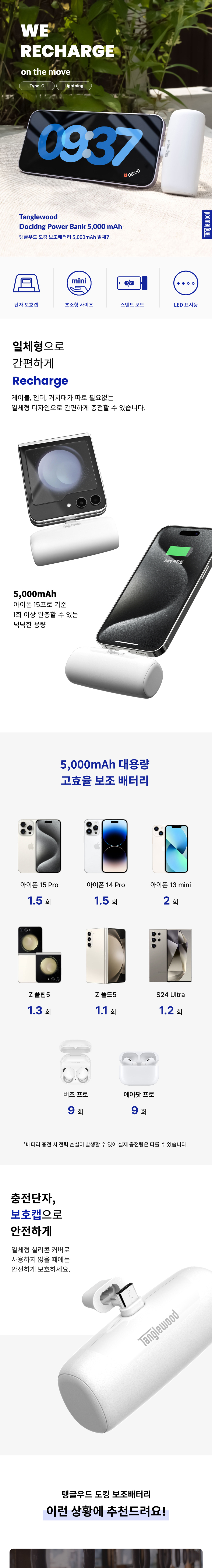 탱글우드 도킹형 일체형 보조배터리 5000mAh