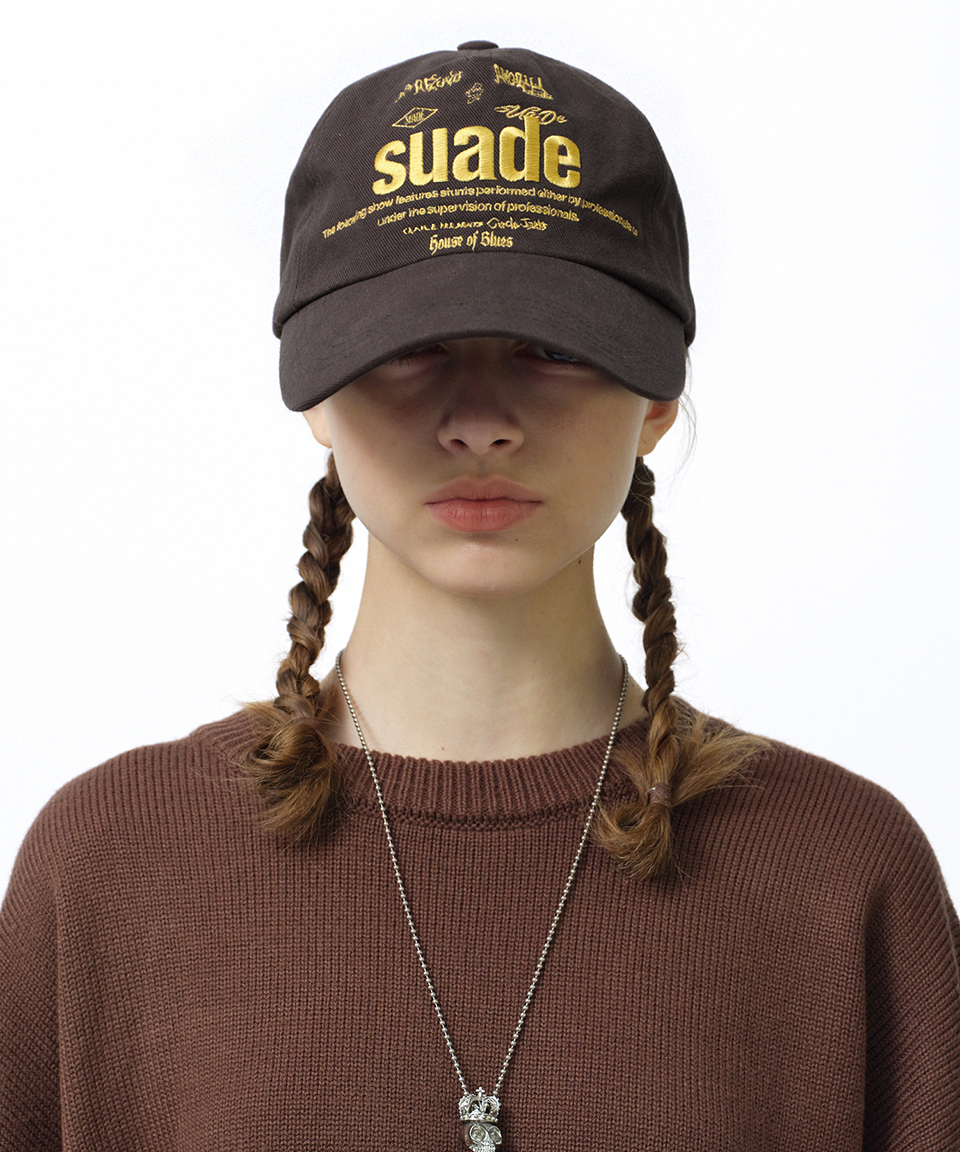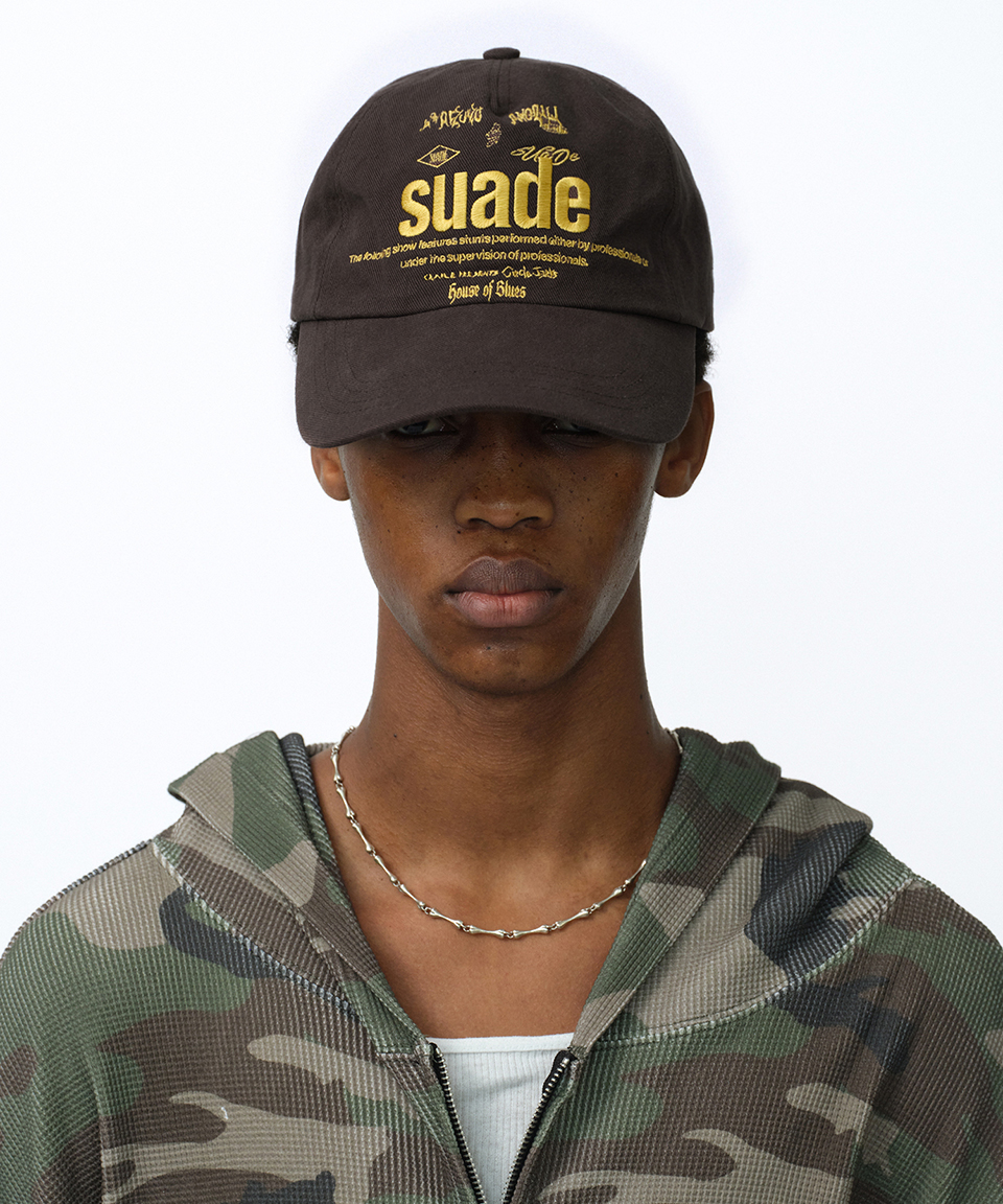 스웨이드 믹스드 로고 볼캡 브라운