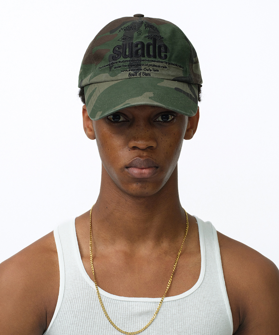 스웨이드 믹스드 로고 볼캡 카모