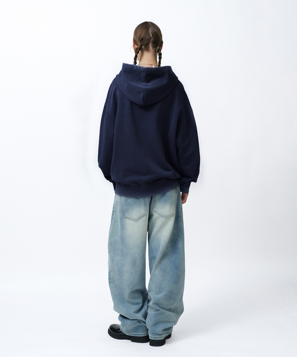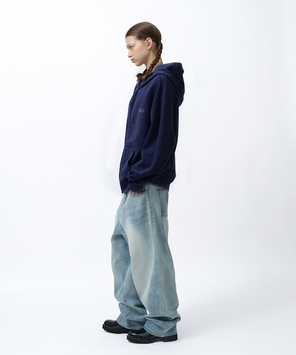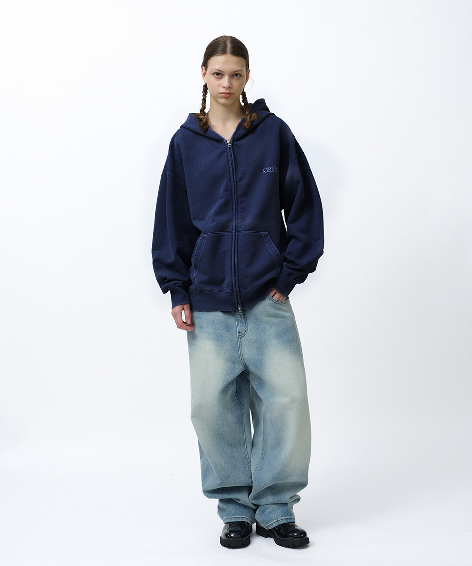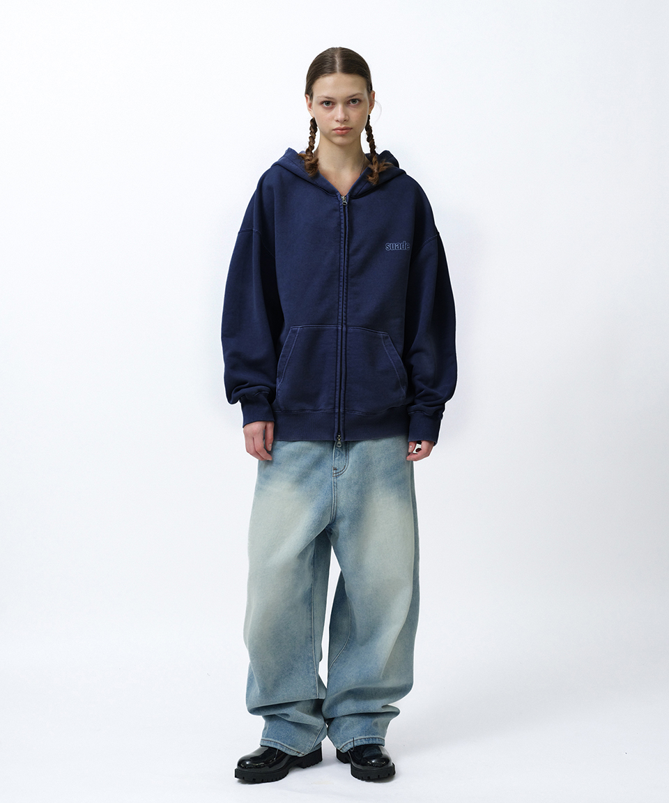 스웨이드 워시드 후드 집업 피그먼트 네이비