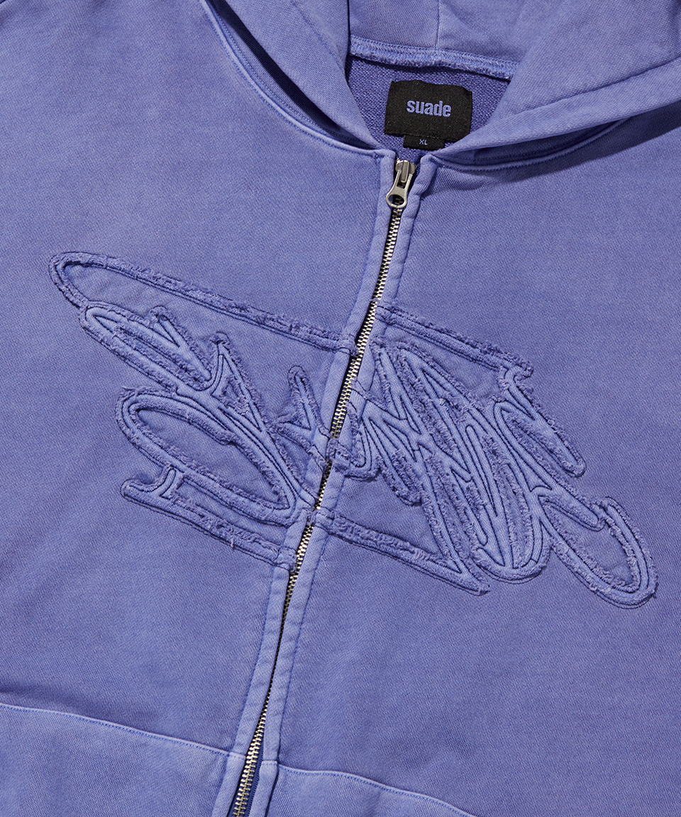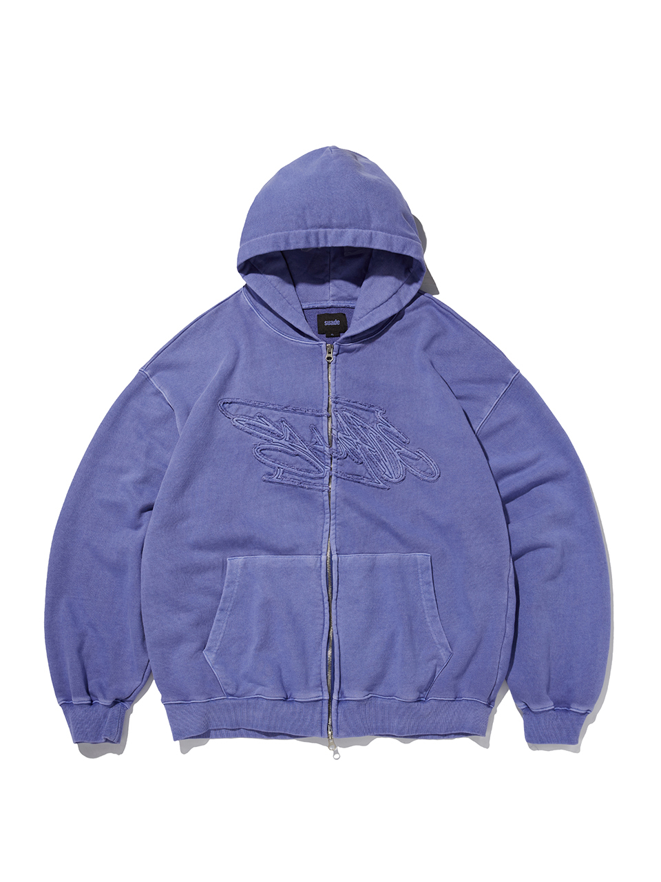 스웨이드 루즈 스웨이드 후드 집업 피그먼트 퍼플