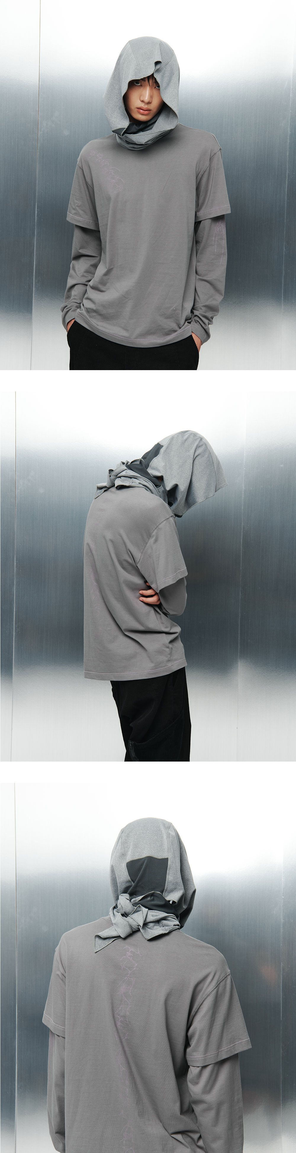 산산기어 후디 스카프 멜란지 그레이