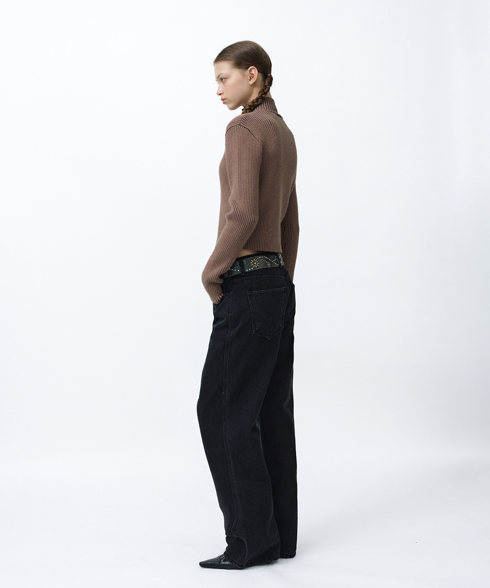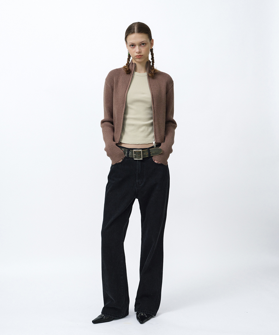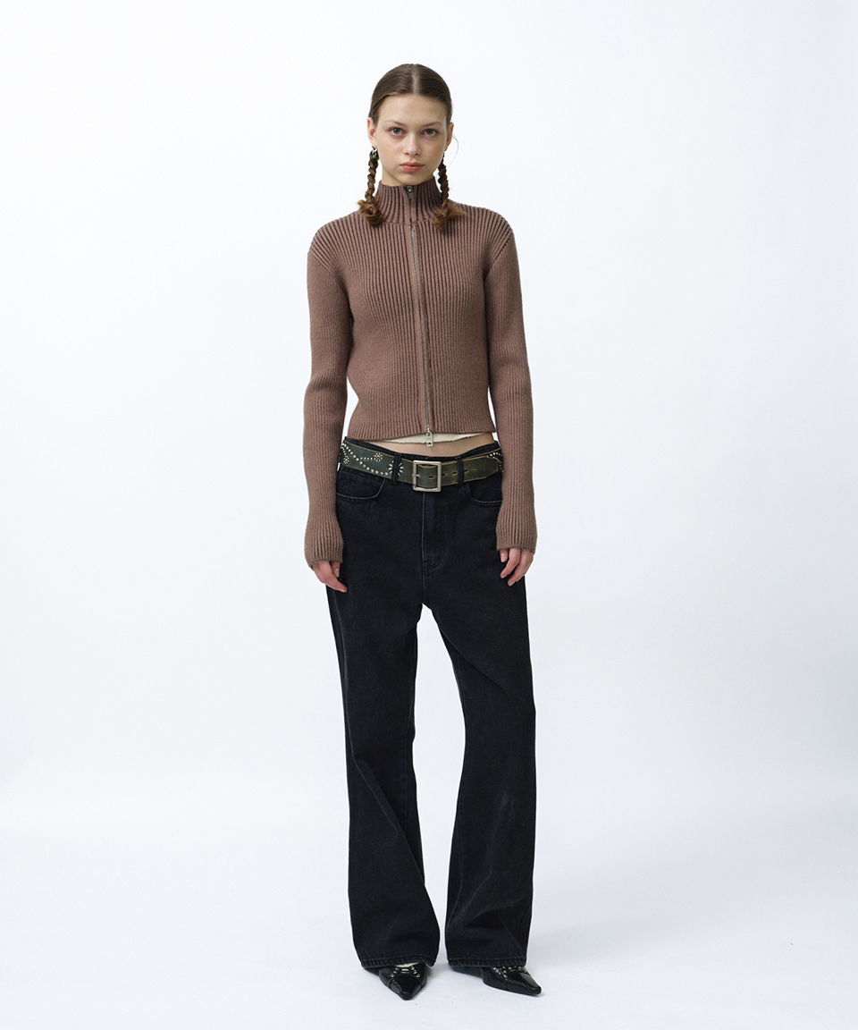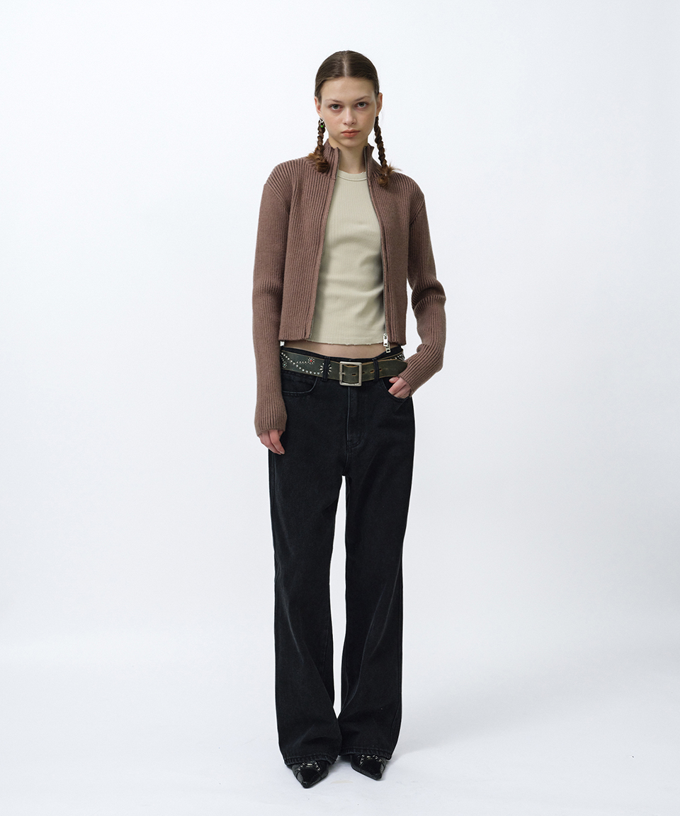 스웨이드 팬시 크롭 니트 집업 브라운