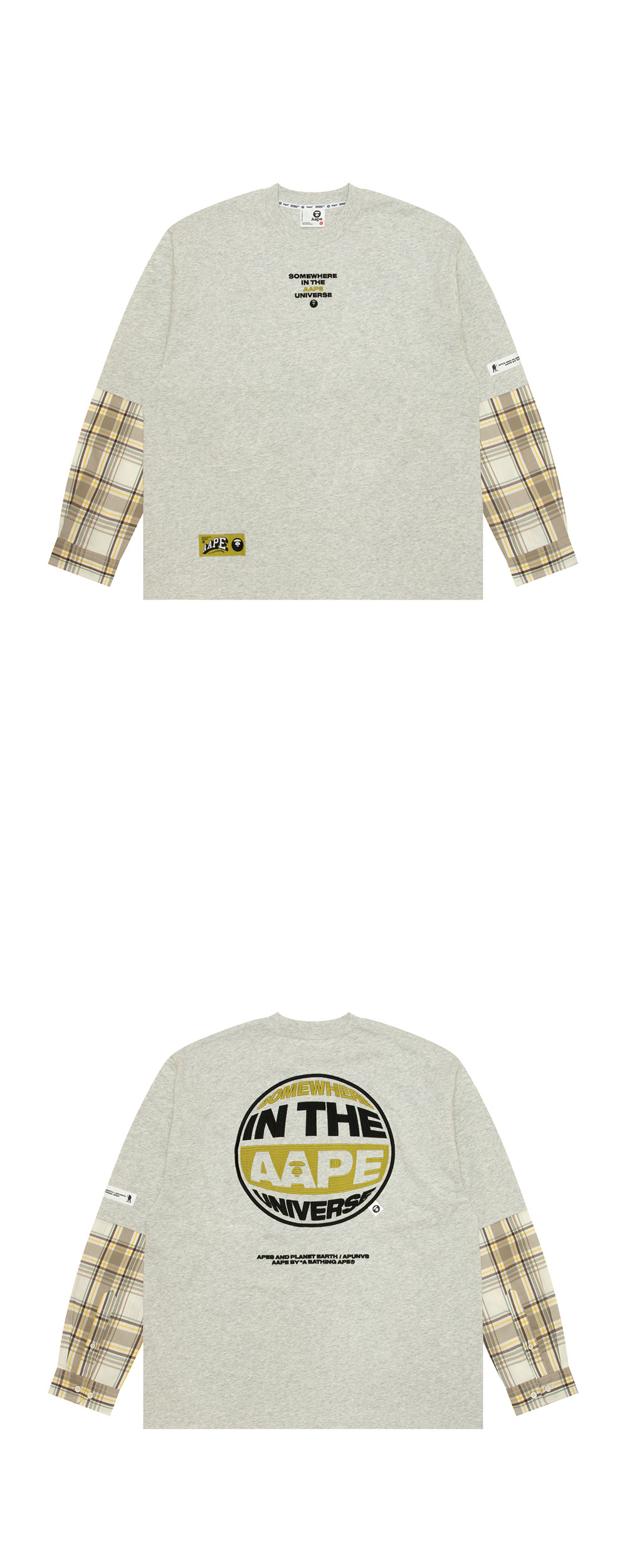 넉넉한 반팔에 셔츠를 레이어드한 느낌을 주는 에이프의 롱 슬리브 티셔츠입니다. - 넉넉한 실루엣 - 전/후면 로고 자수 디테일 - 소매 패널 및 버튼 디테일