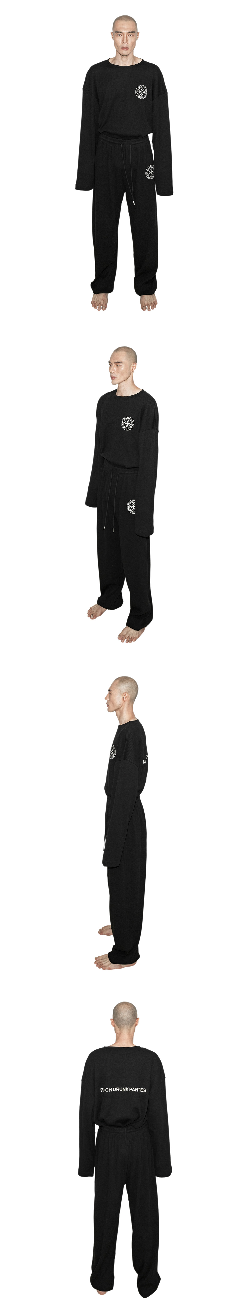 펀치 드렁크 파티즈 서클 로고 와플 라운지 팬츠 블랙