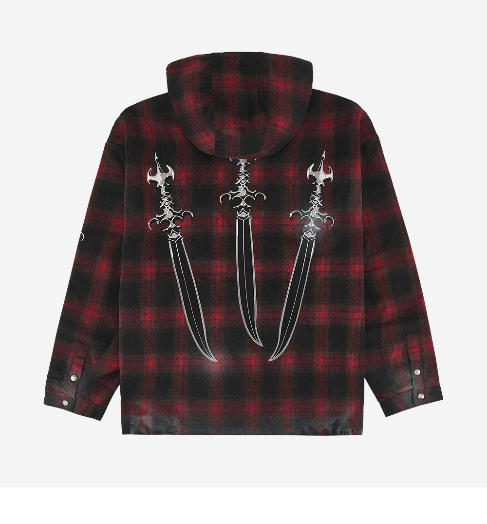 Thug Club Arab Sword Flannel Hoodie Zip-Up Red