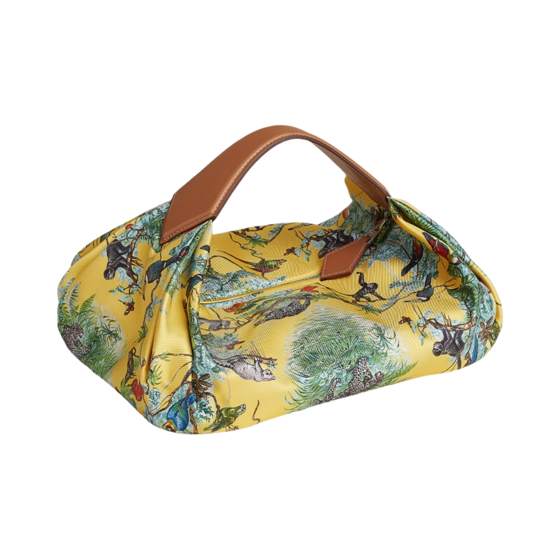 (W) Hermes Balusoie Bag Printed Hunter Cowhide & Palladium Jaune De Naples Nature