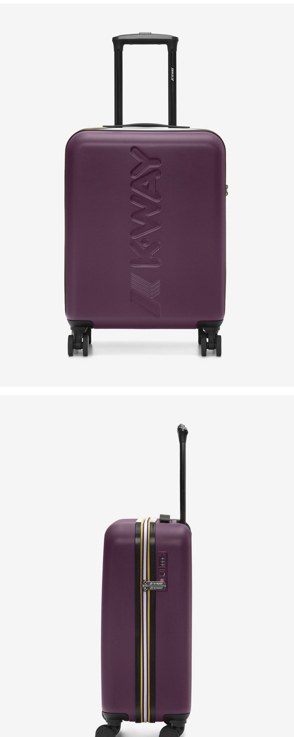 짧은 주말 여행이나 출장용으로 적합한 크기의 트롤리 입니다. 전면에 K-Way 큰 로고가 새겨져 있는 캐빈 사이즈의 캐리어 이동성이 좋은 네 바퀴가 있으며, 까웨만의 아이코닉한 바야데르 테이프 특징 양방향 지퍼와 자물쇠로 마감 처리 carry-on 사이즈의 트롤리 (55x40x20cm) TSA Lock 적용, 360° 회전 가능한 이중 휠 내부에 포켓 및 스트랩 포함