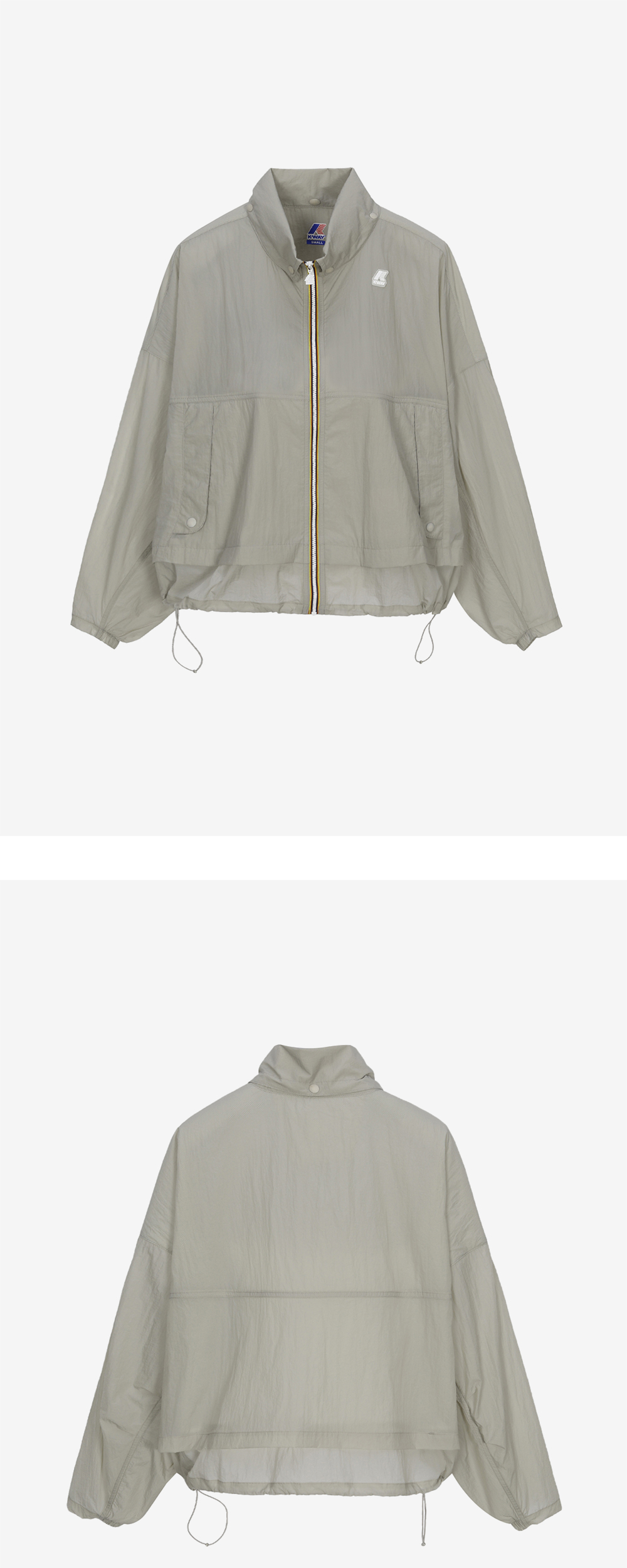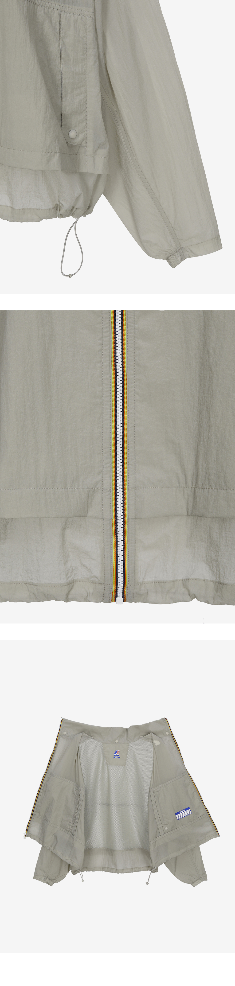 기능성 소재를 사용한 크롭 기장의 여성용 자켓 방수, 방풍 기능성 3L 소재 착용시 편안함을 위해 부드러운 안감 사용 밑단, 소매 로우컷 디테일 후드, 소매, 밑단 스트링으로 사이즈 조절 가능 2-WAY 지퍼 사용으로 활동성 제공 뒷면 벤틸레이션 레귤러핏