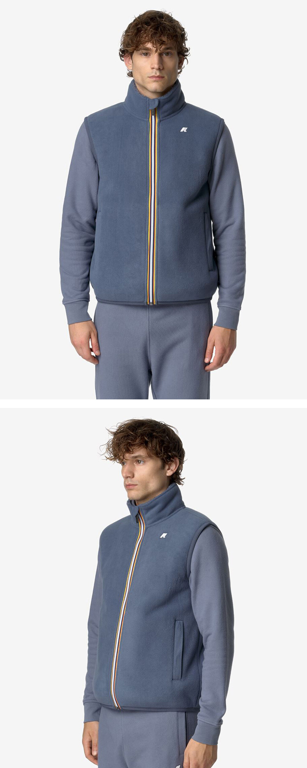 이중 레이어 폴라플리스 외관은 매끄럽고 가벼운 폴라플리스 레이어, 안감은 셰르파 폴라플리스 레이어로 두 가지 대조적인 텍스처가 만나 여유로운 스타일을 연출 하이넥으로 보온성 강화 바야데르 3색 지퍼로 포인트