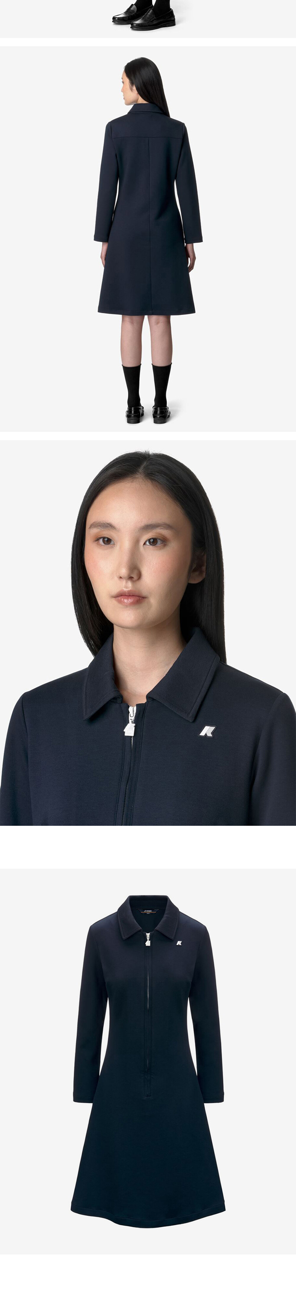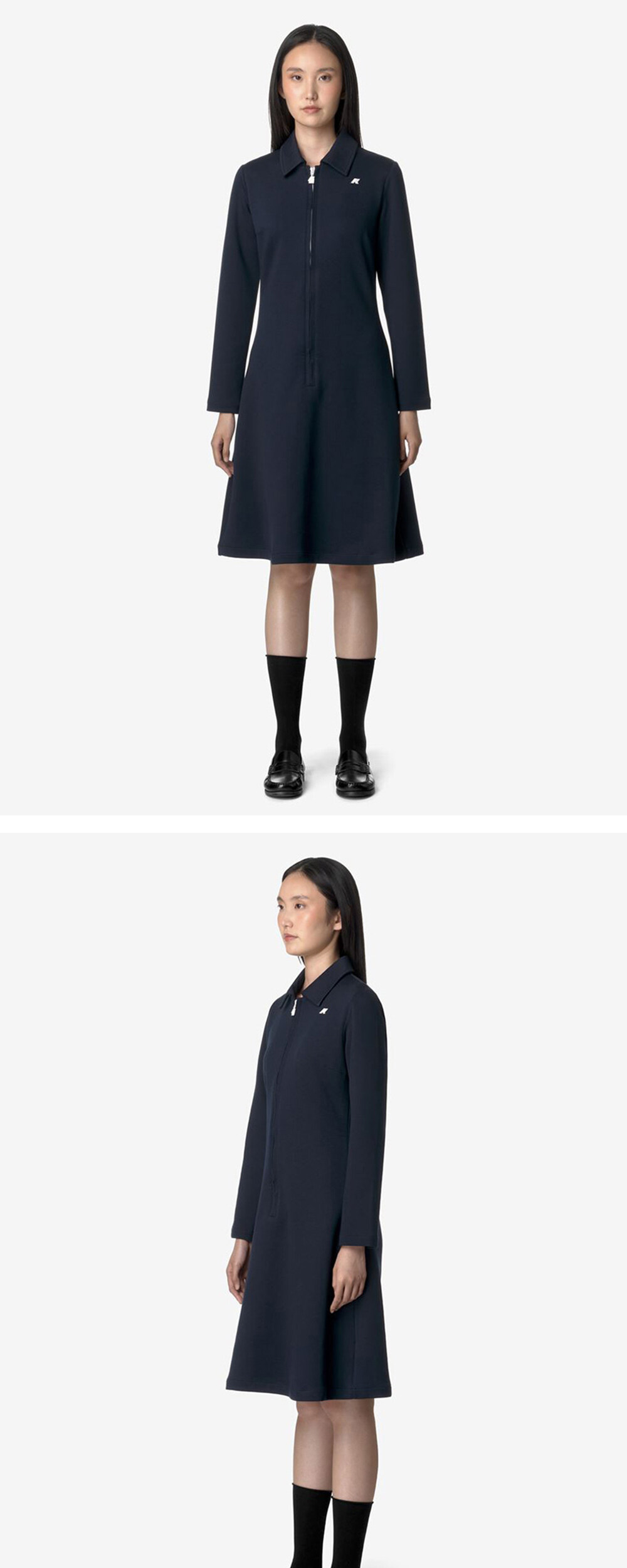 여가 시간과 스포츠를 위해 디자인된 7/8 길이의 드레스입니다. 신축성 있는 매트 인터록 원단 플레어 여성 라인 레귤러핏