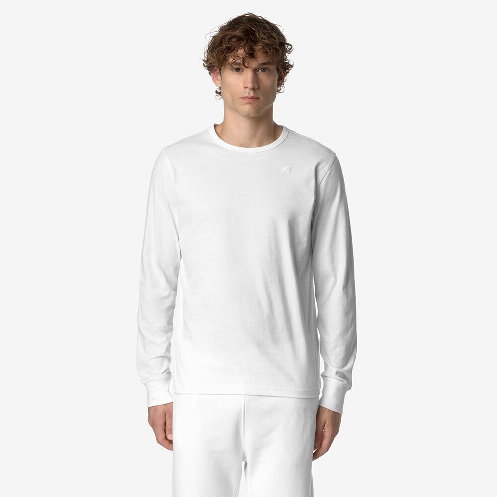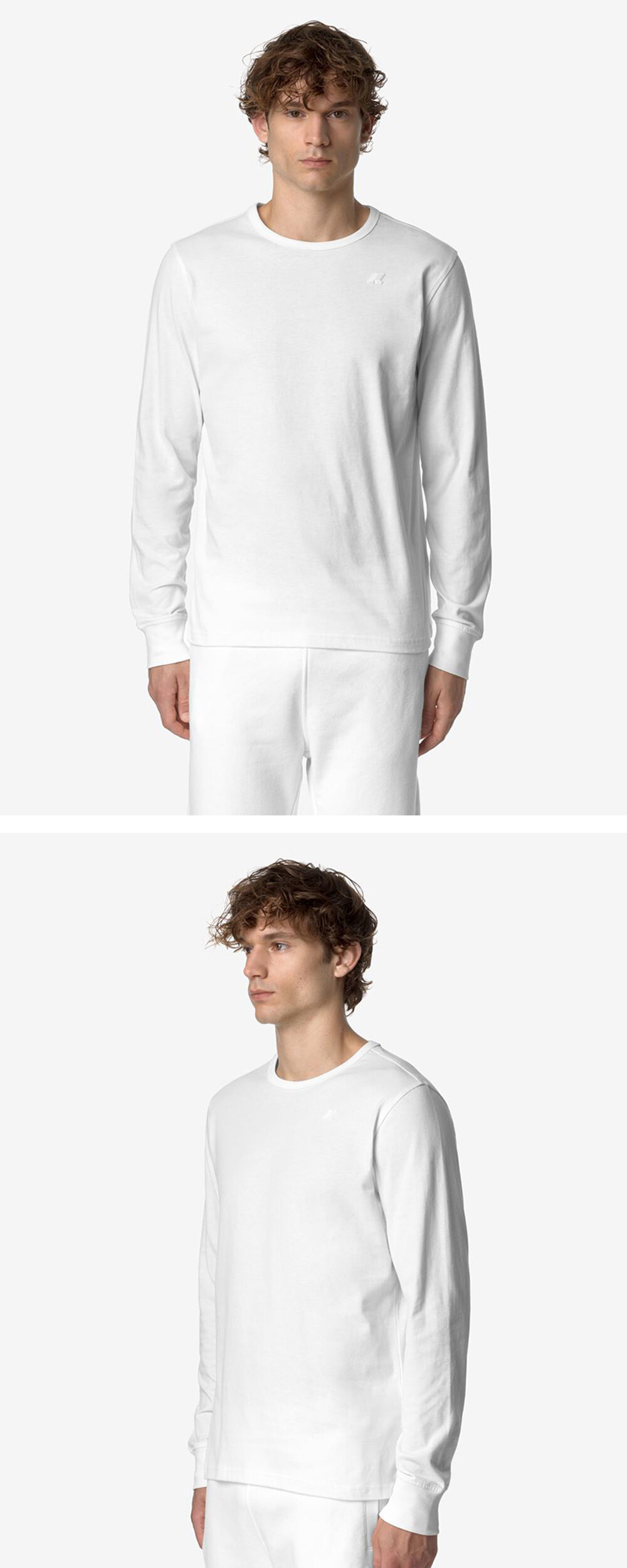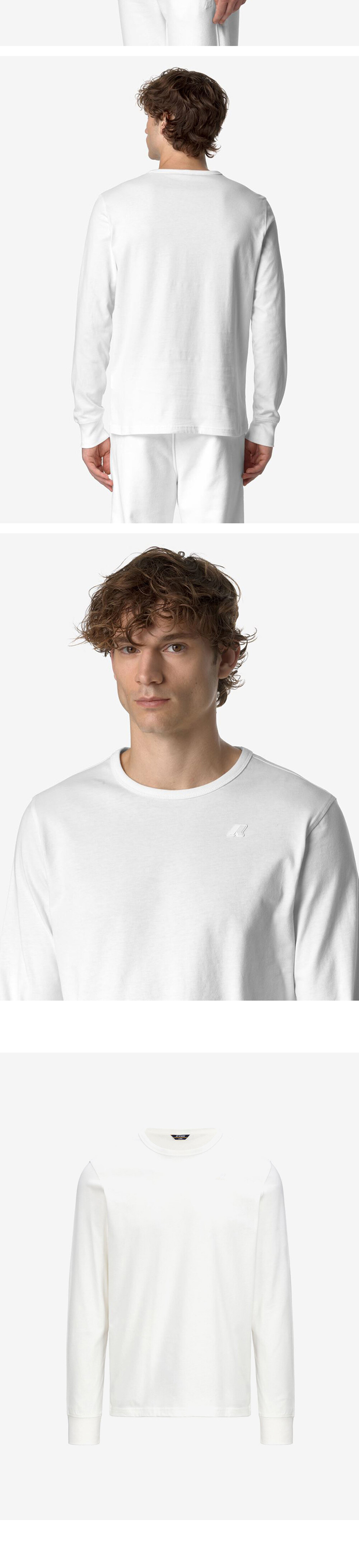 가벼운 순면 브러시드 저지의 벨벳 같은 질감과 운동복 스타일을 결합한 남성용 긴팔 티셔츠 골지 크루넥-실리콘 로고 패치 슬림핏
