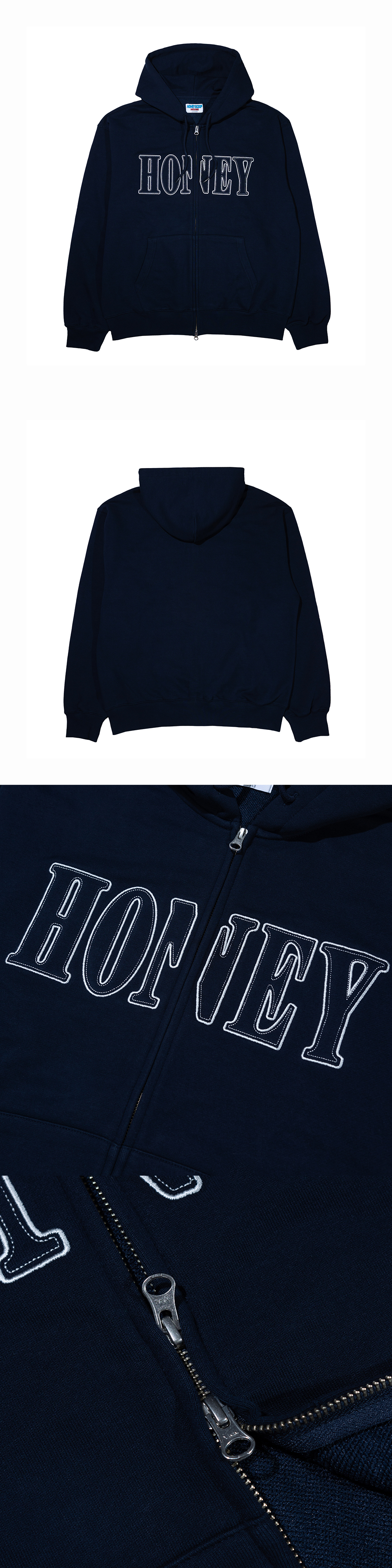 허니스쿱하우스 허니 스티치 집업 후디드 스웨트셔츠 네이비