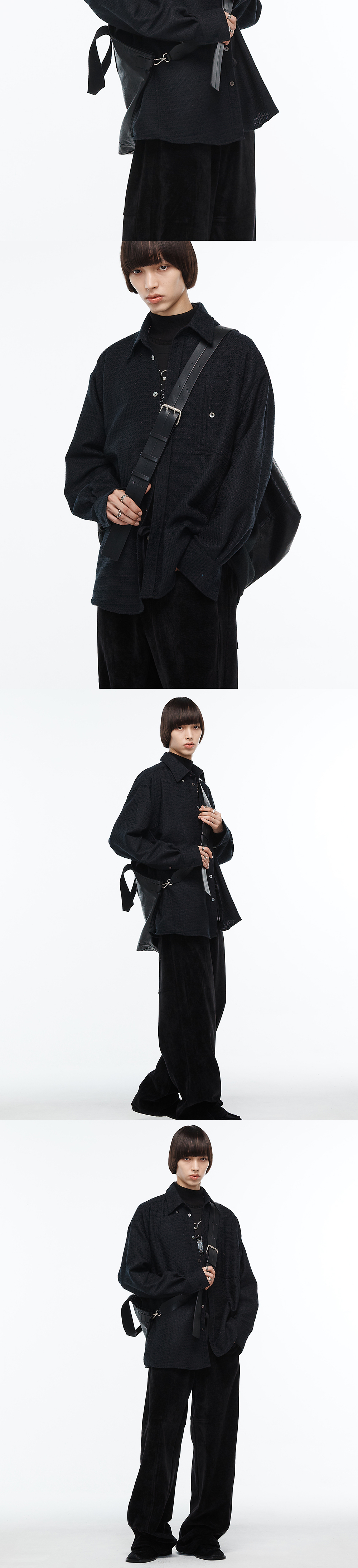 독특한 조직감을 트위드 소재(FABRIC BY JAPAN)로 제작된 오버사이즈 셔츠입니다. 박시한 실루엣으로 편하게 입기 좋은 제품입니다. -DETAIL- 오버사이즈 실루엣 카펜터 포켓 디테일 몸판 사이드 입체 절개