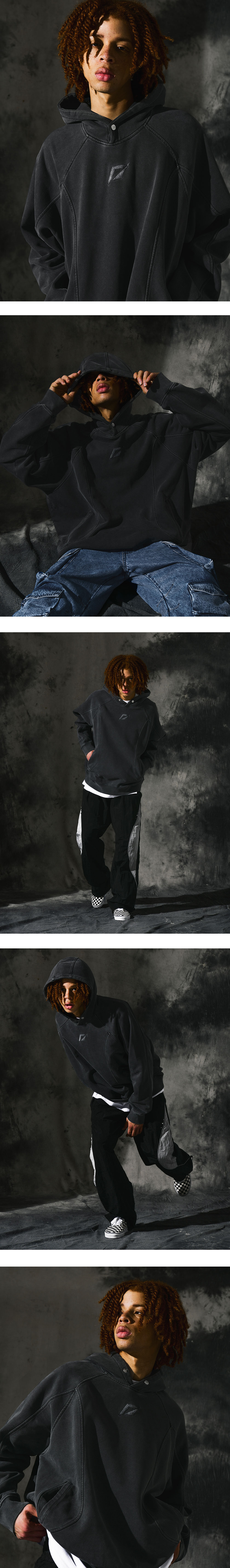 도미넌트 피그먼트 워싱 퍼즐 자수 후디 차콜