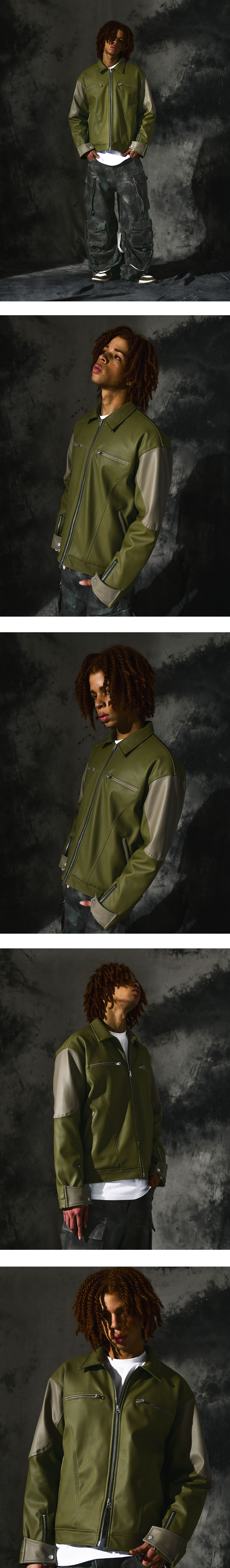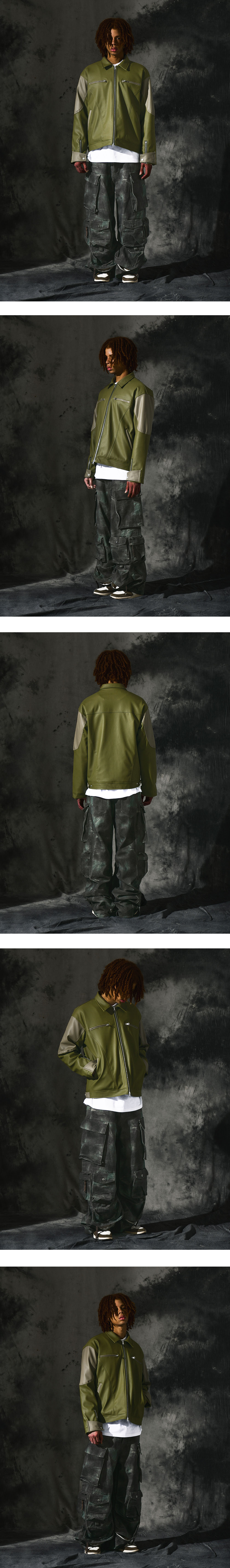 도미넌트 투웨이 크롭티드 디스트레이스드 레더 자켓 카키 올리브