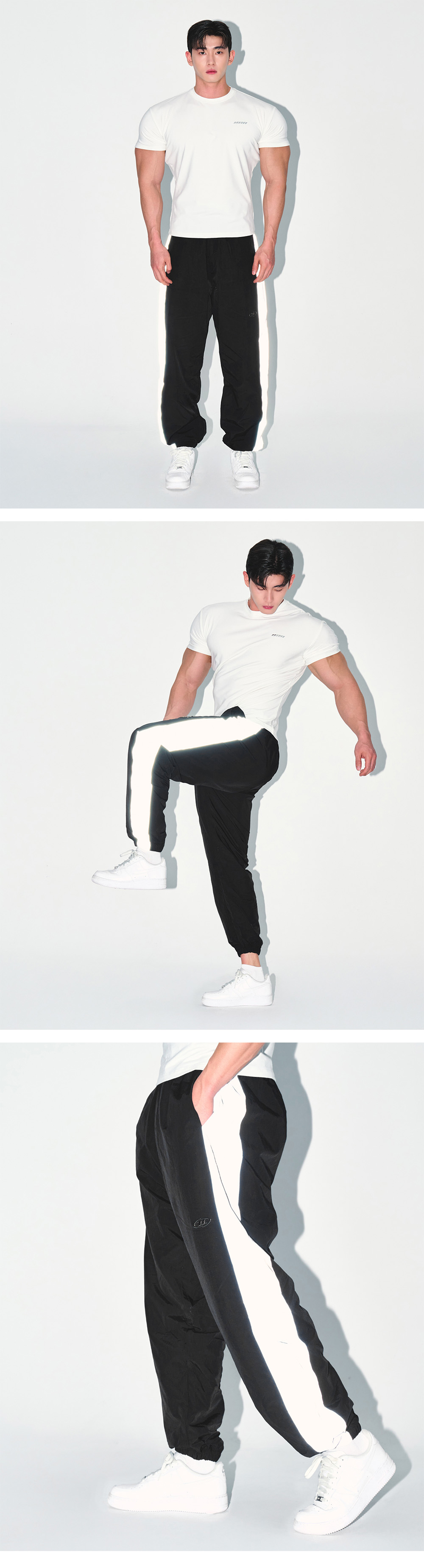 본투윈 크롬 나일론 블럭 팬츠 블랙