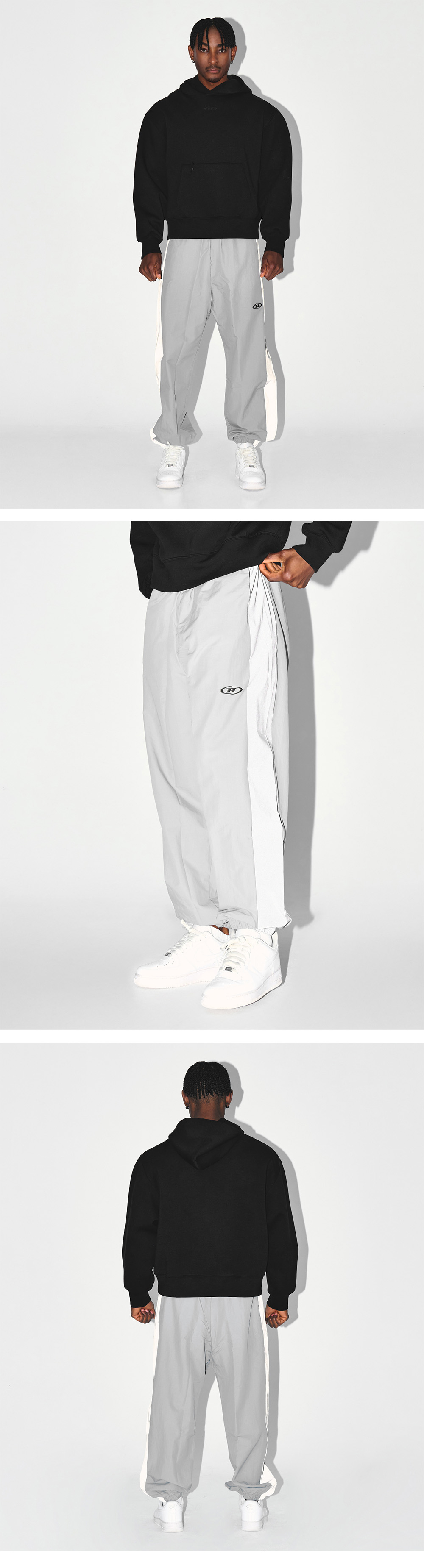 [DETAILS] *크롬 나일론 블록 팬츠 - 고시감이 있는 나일론 소재 - 크롬 B 로고 포인트 - 사이드 배색 디테일 - 세미오버 핏 Material : NYLON 100% [SIZE GUIDE] (Unit : cm) 1 : Length 103 / Waist 30 / Thigh 40 / Rise 38 / Hem 13 2 : Length 107 / Waist 35 / Thigh 42.5 / Rise 41 / Hem 15 Fitting : EM 2 Size, 182cm, 87kg
