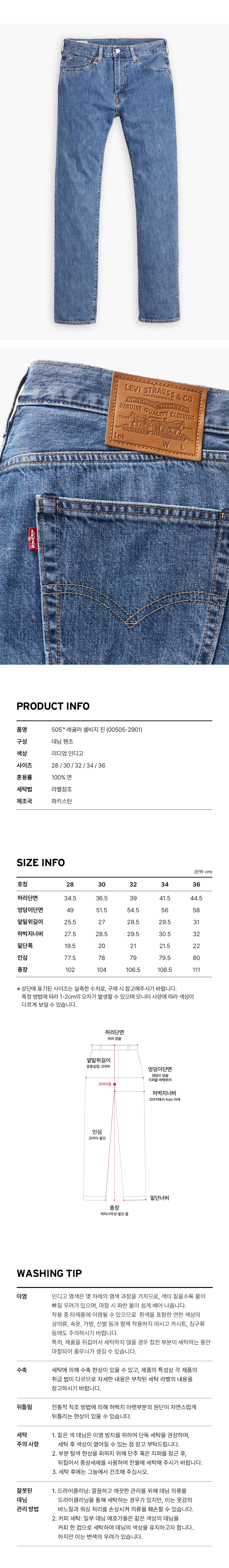 리바이스 505™ 레귤러 셀비지 진 미디엄 인디고