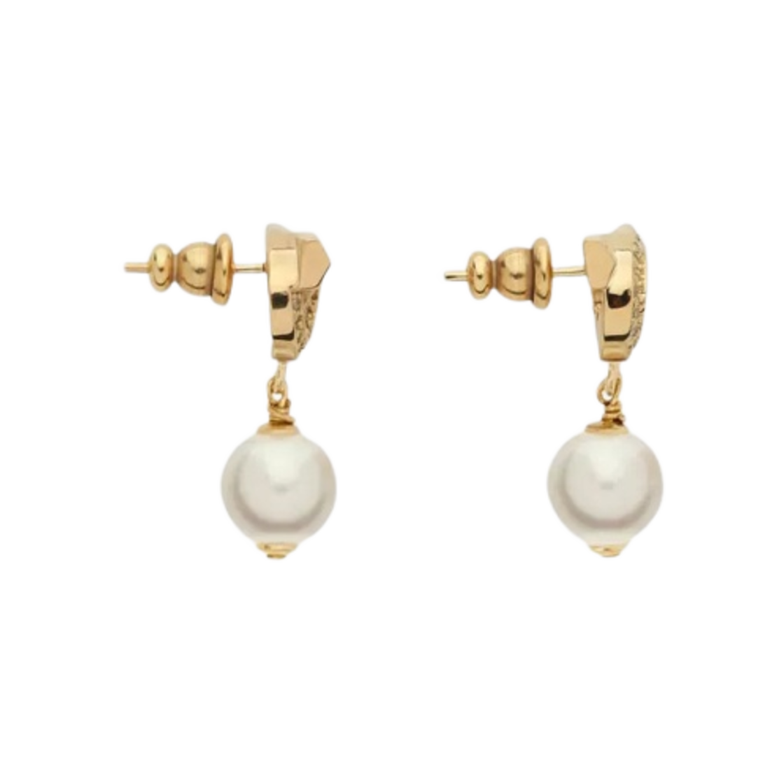 (W) Ferragamo Gancini Pearl and Crystal Earrings Gold