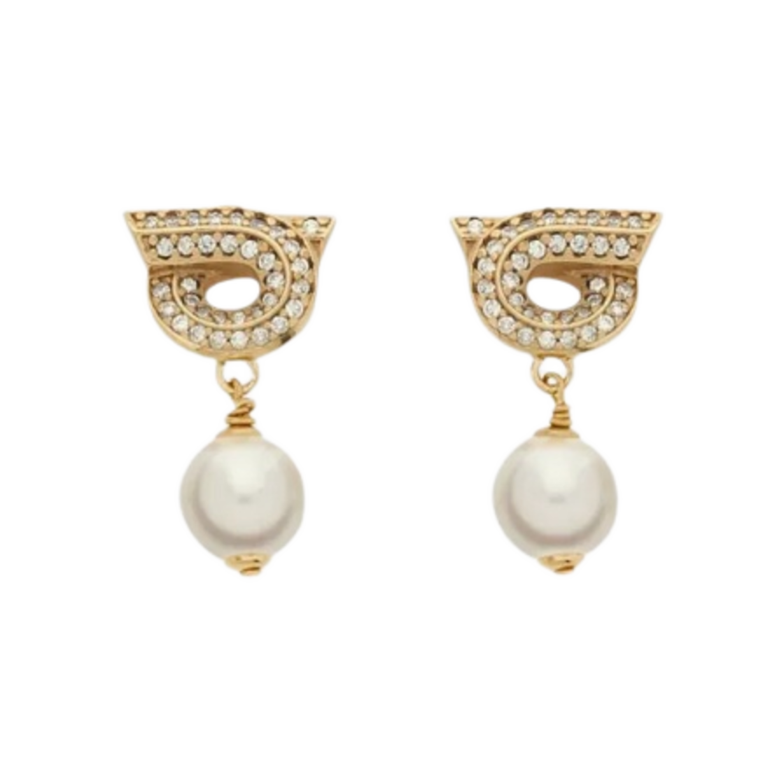 (W) 페라가모 간치니 펄 앤 크리스탈 이어링 골드