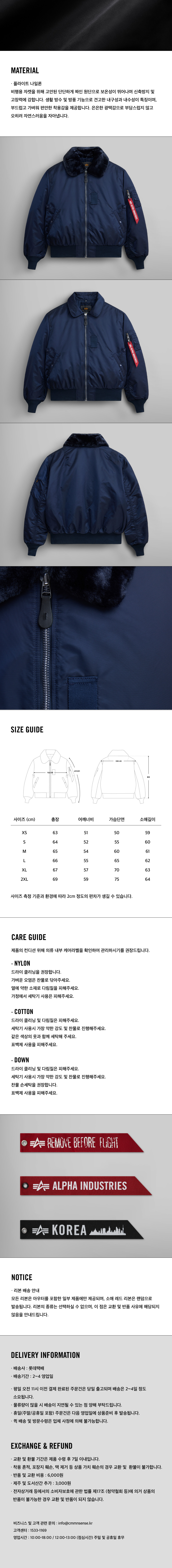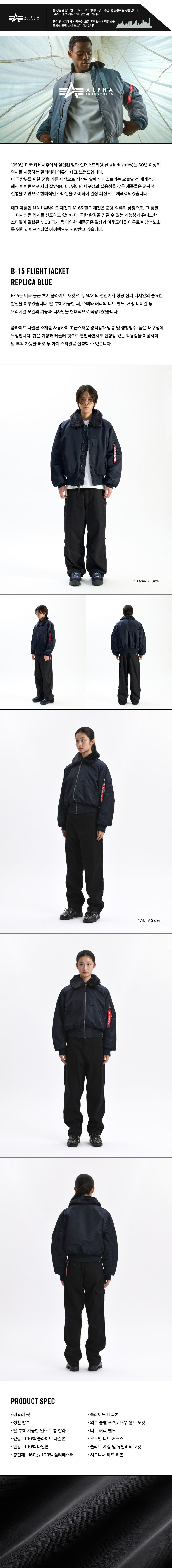 알파 인더스트리 알파 B-15 플라이트 재킷 레플리카 블루