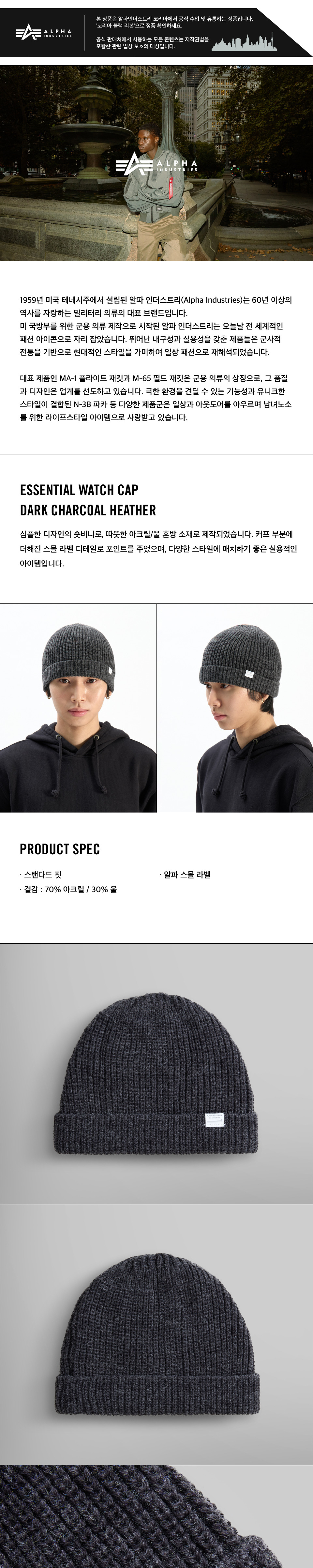 알파 인더스트리 에센셜 워치 캡 다크 차콜 헤더