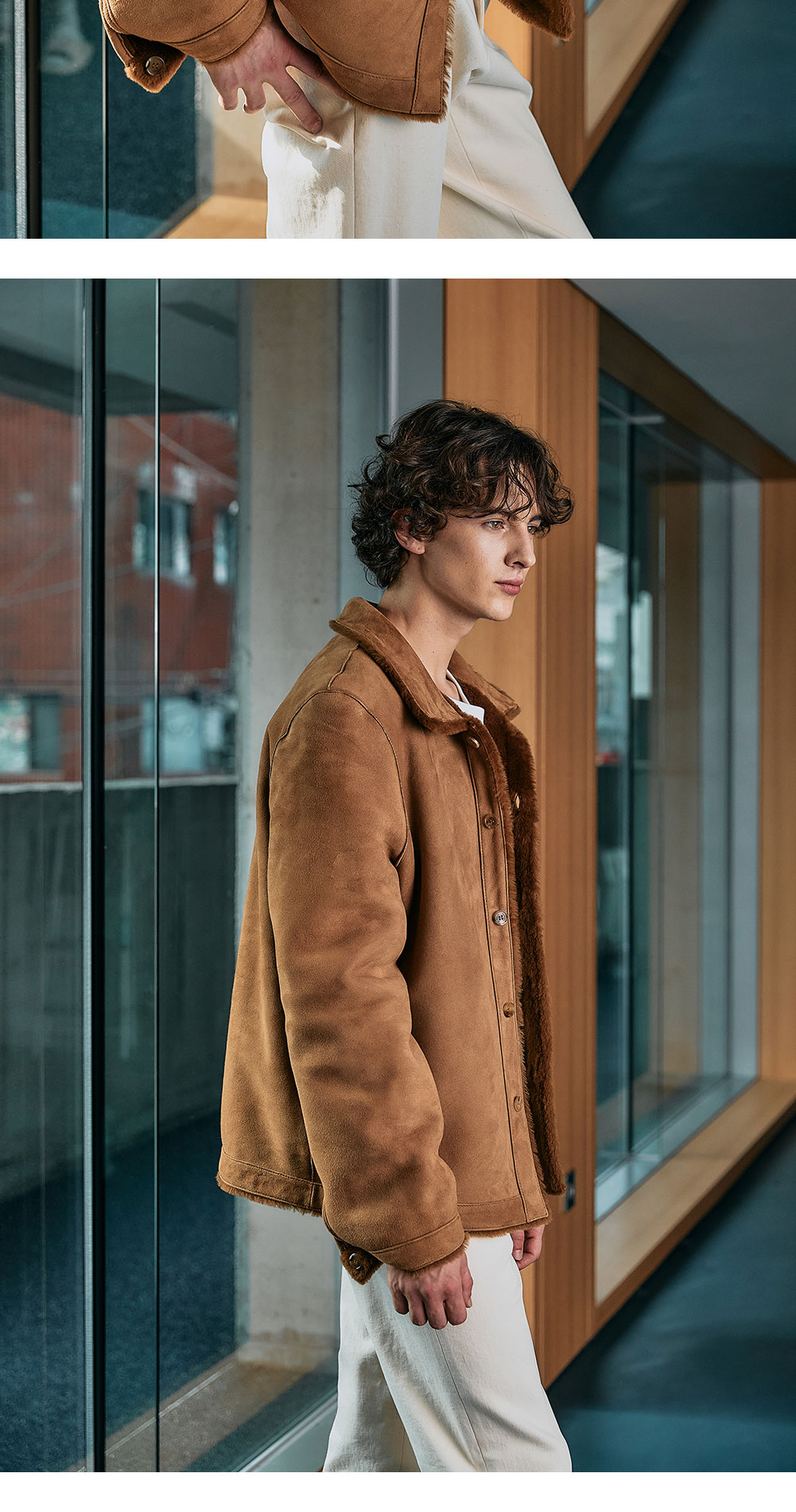 - Reversible - Spanish sheep skin - Logo embroidered - Real horn logo button - MODEL : 183CM 70KG TOP - M BOTTOM - M TOP 1,2 (size) - 1 (~103), 2 (~108)