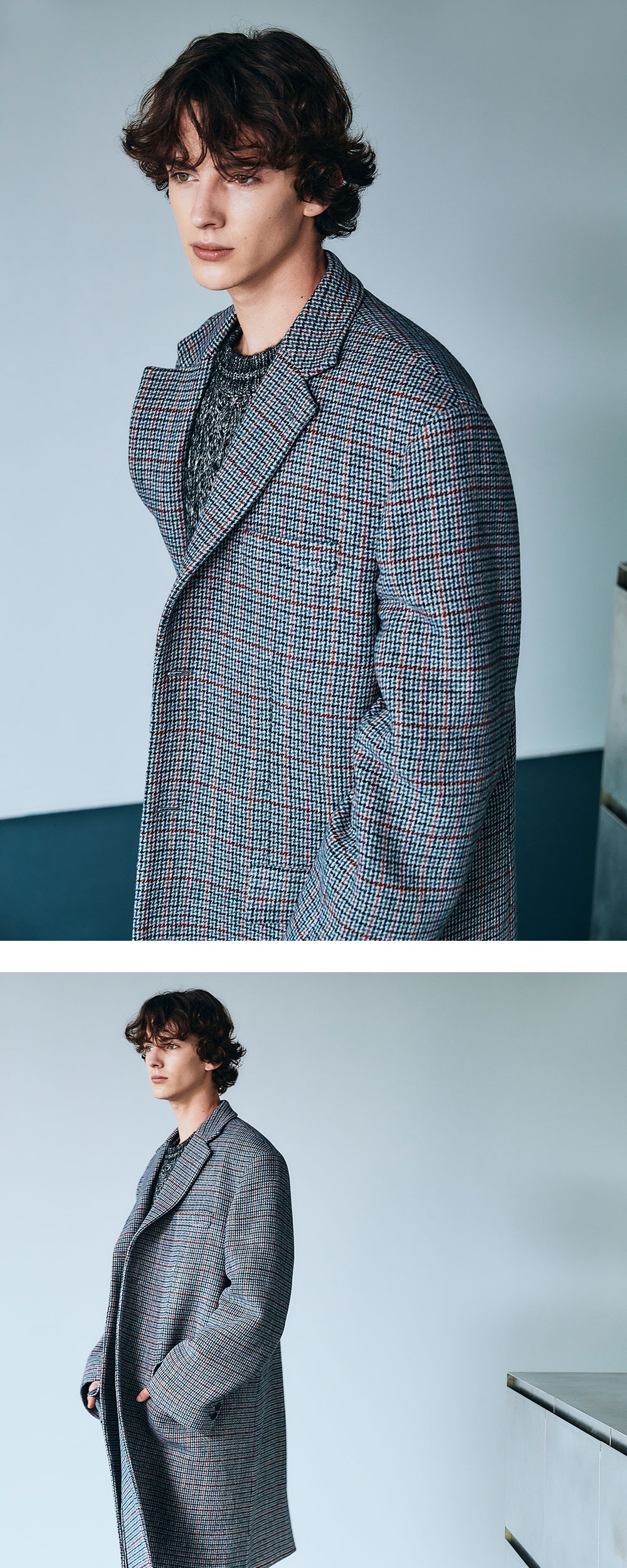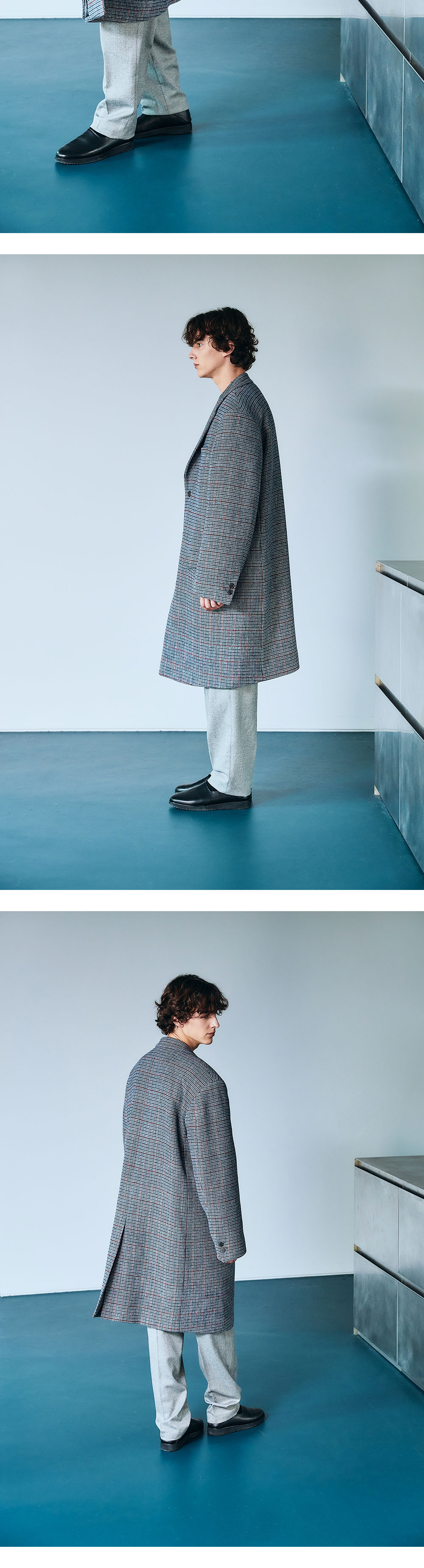 - MODEL : 183CM 70KG TOP -1 BOTTOM - M TOP SIZE - 1 SIZE (~105), 2 SIZE (~110) - Italian checked wool blend - oversized - Logo button
