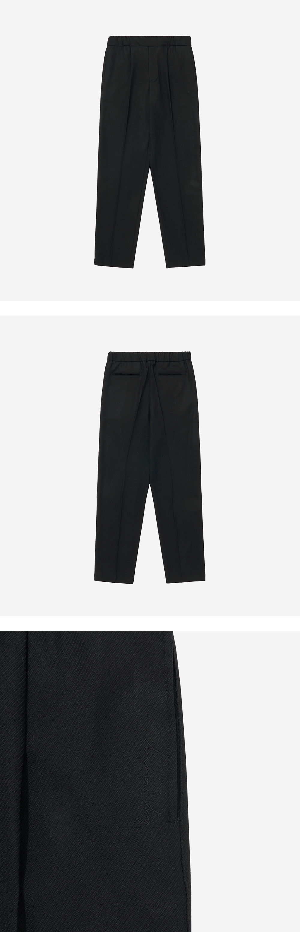 - MODEL : 183CM 70KG TOP - M BOTTOM - M - BOTTOM SIZE WAIST : 1 SIZE(~30), 2 SIZE (~32) , 3 SIZE (~34) - Tapered Fit - Waist banding - logo string - Single pleats - Side logo embroidered