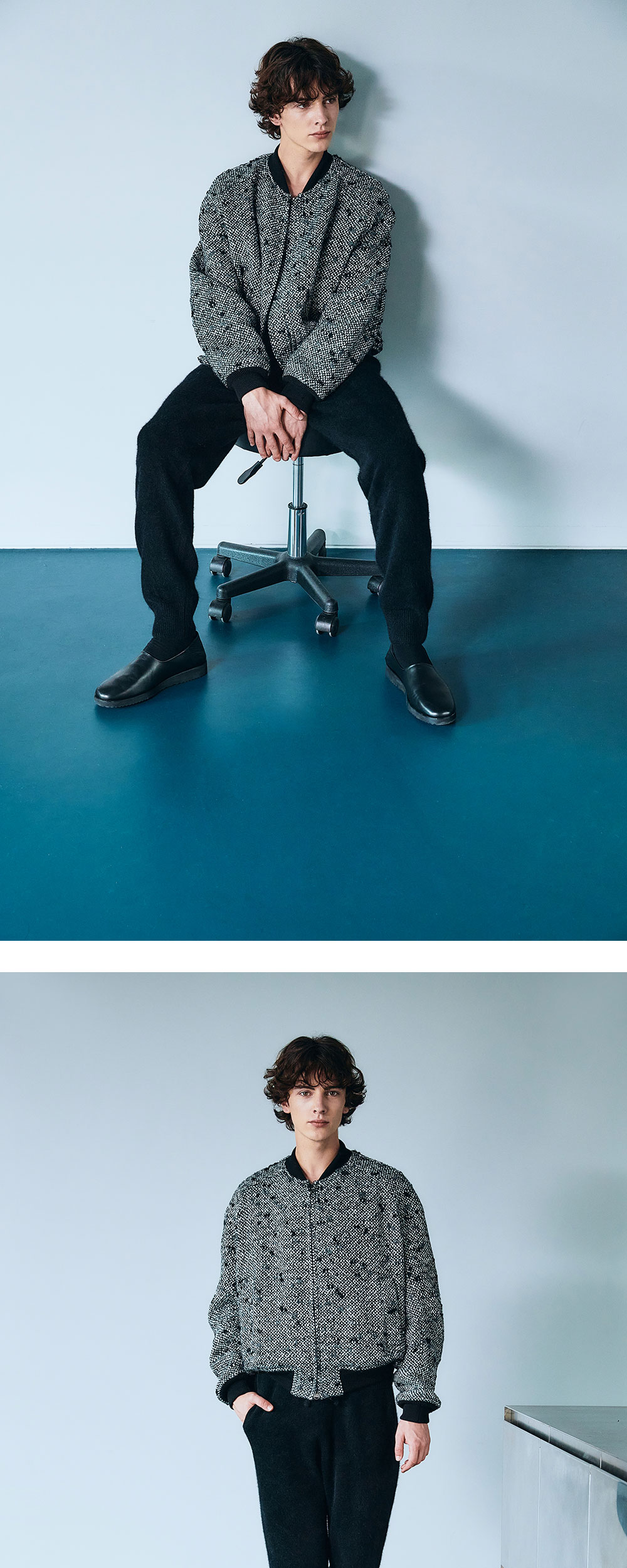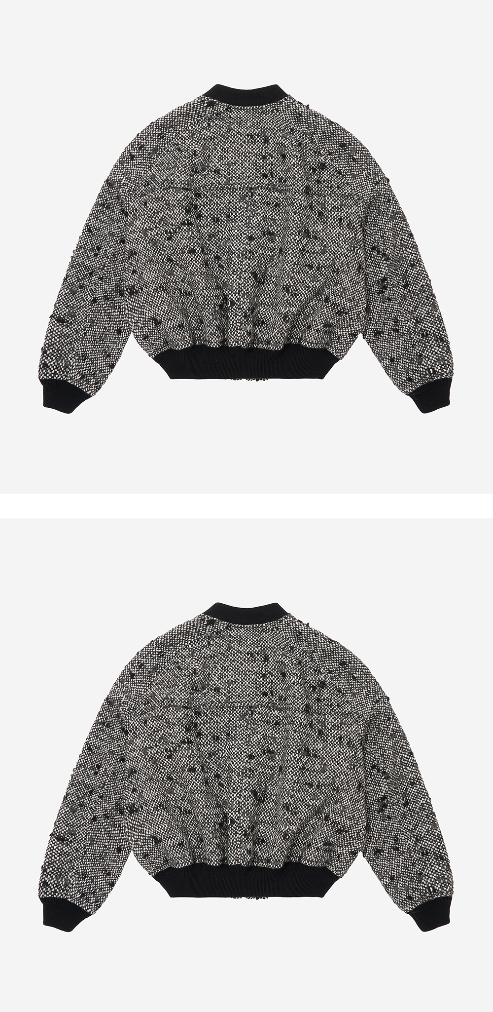- MODEL : 183CM 70KG TOP - 1 BOTTOM - M SIZE GUIDE - 1 SIZE (M), 2 SIZE (L) - Wool blend tweed - Logo embroidered - Lampo two-way zipper - Wool blend ribbing