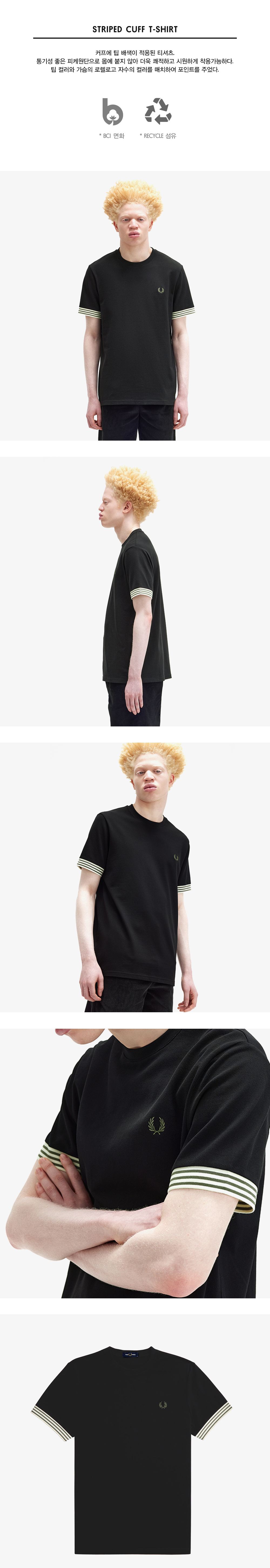 프레드페리 스트라이프 커프 티셔츠 블랙