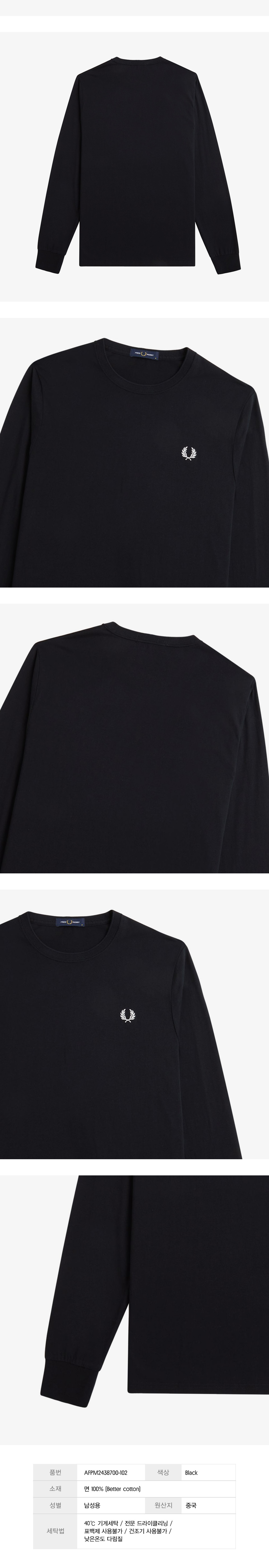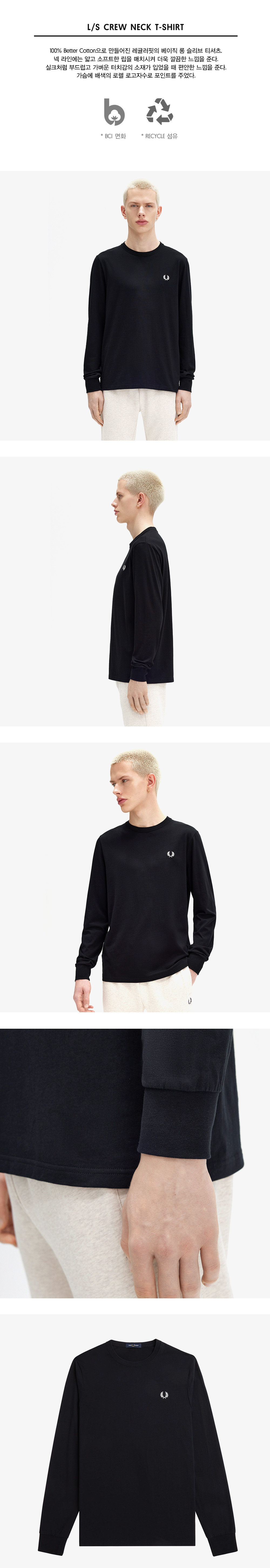 프레드페리 롱 슬리브 크루넥 티셔츠 블랙