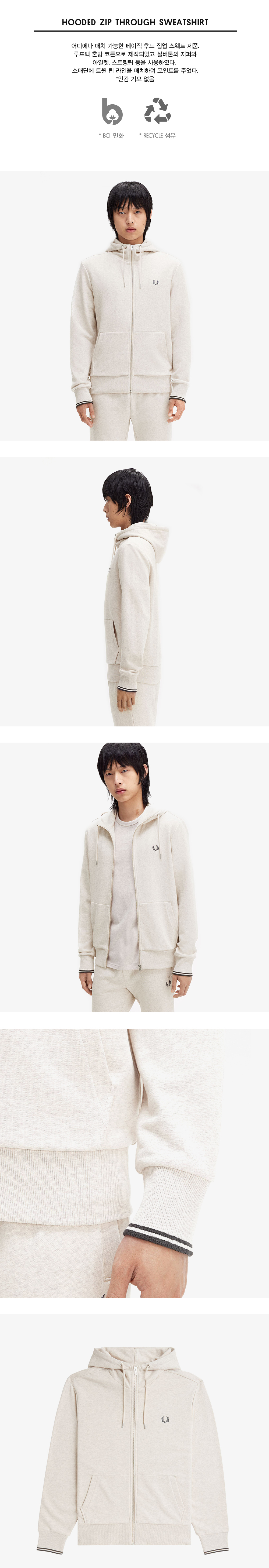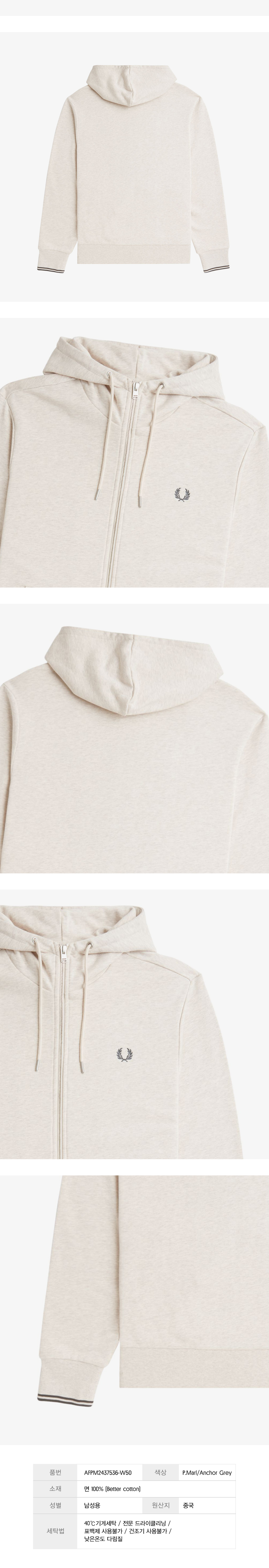 프레드페리 후드 집 스루 스웻셔츠 포리지