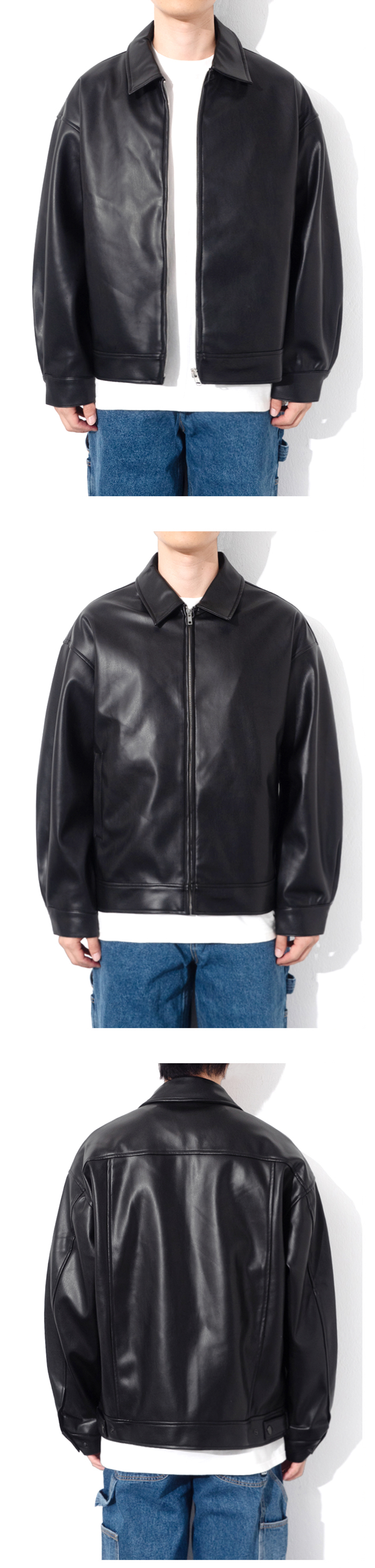 큐티에잇 가먼츠 신세틱 레더 싱글 자켓 블랙