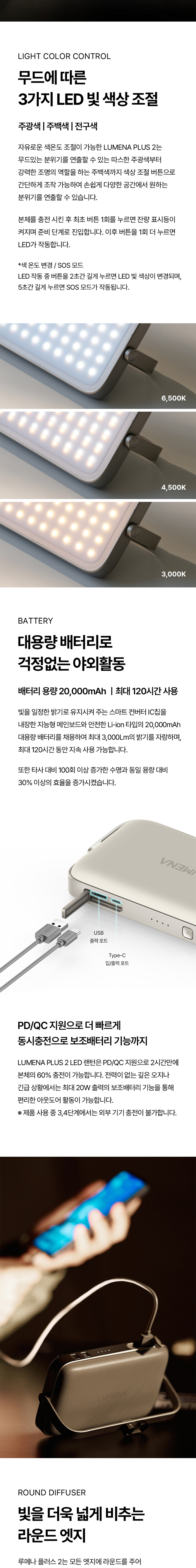 루메나 플러스 2 LED 캠핑 랜턴 카밍 베이지