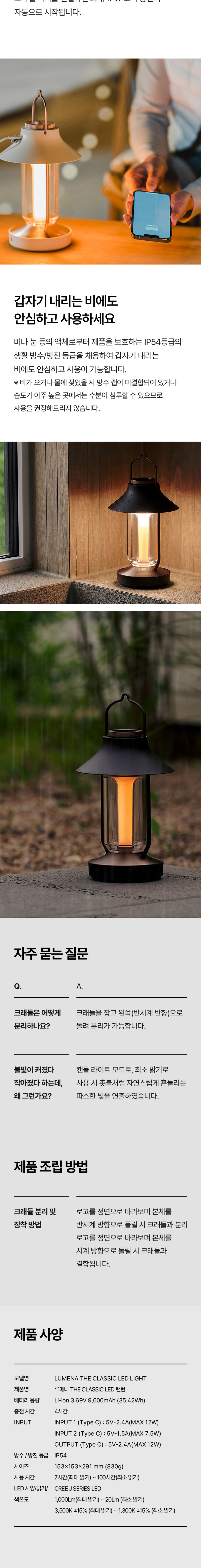 루메나 THE CLASSIC 감성 LED 캠핑 랜턴 클라우드 화이트