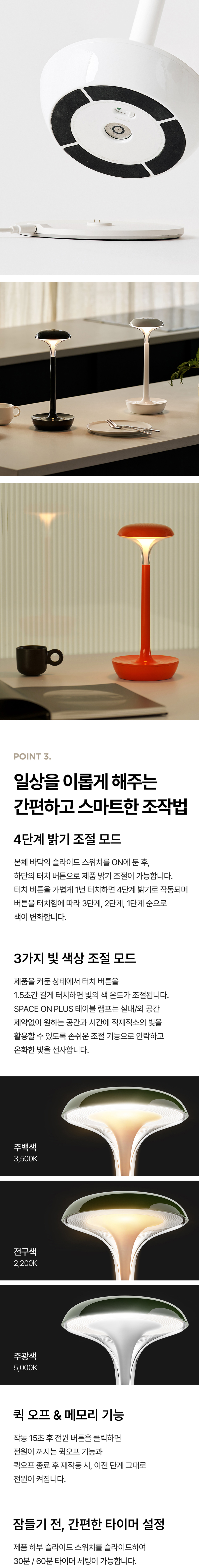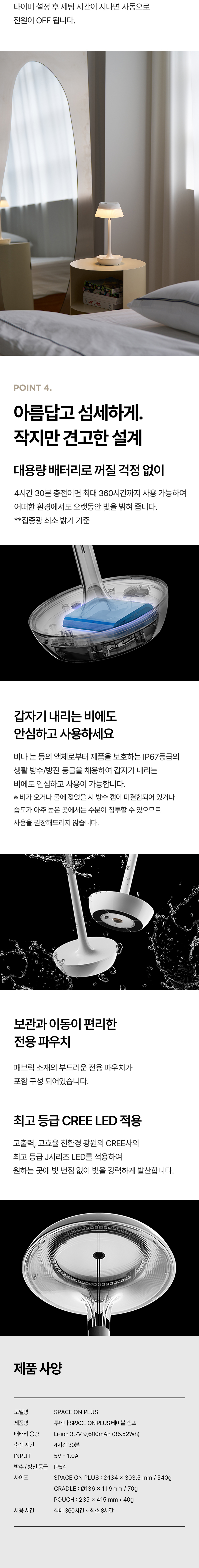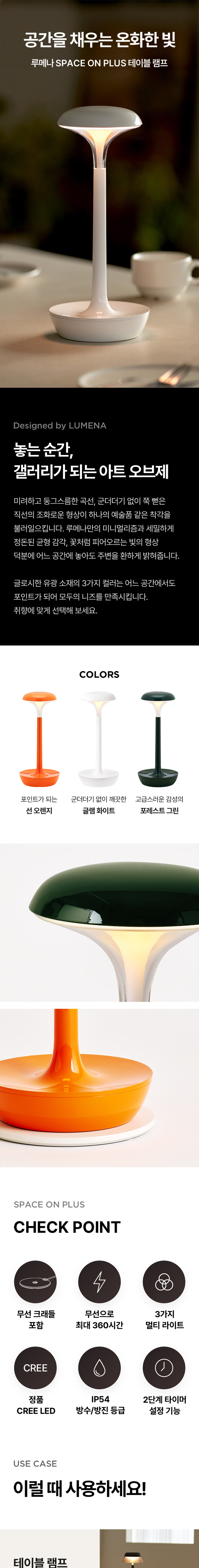 루메나 SPACE ON PLUS 테이블 조명 글램 화이트