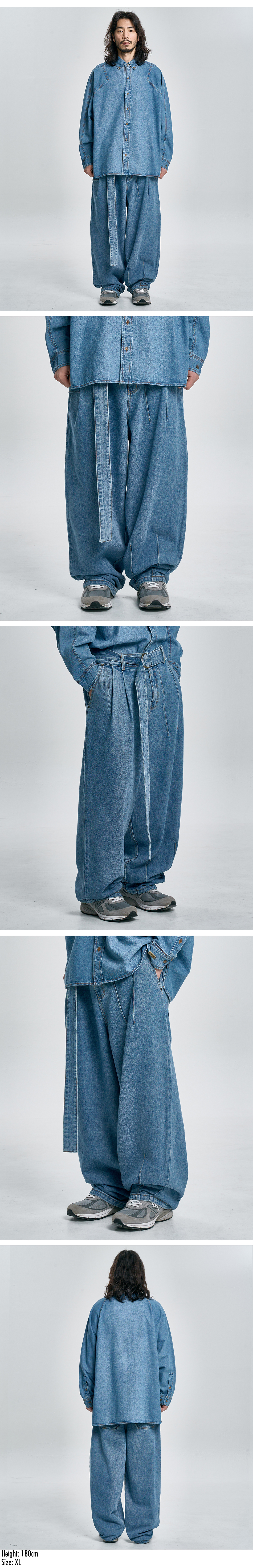 아조바이아조 어시메트릭 워시드 데님 팬츠 스카이 블루