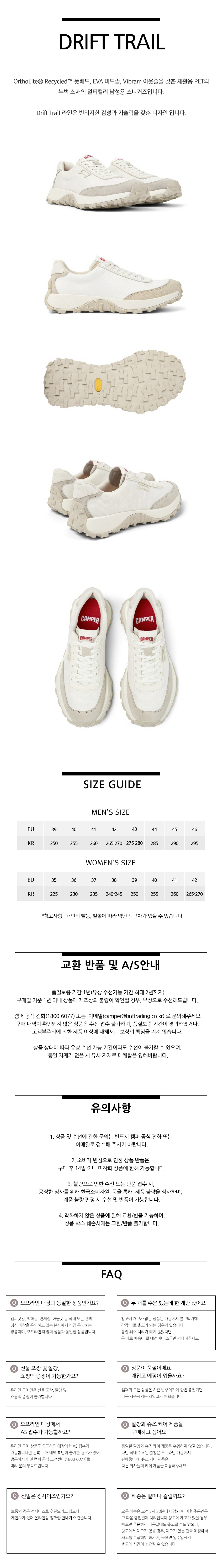 캠퍼 남성 드리프트 트레일 텍스타일 앤 누벅 화이트