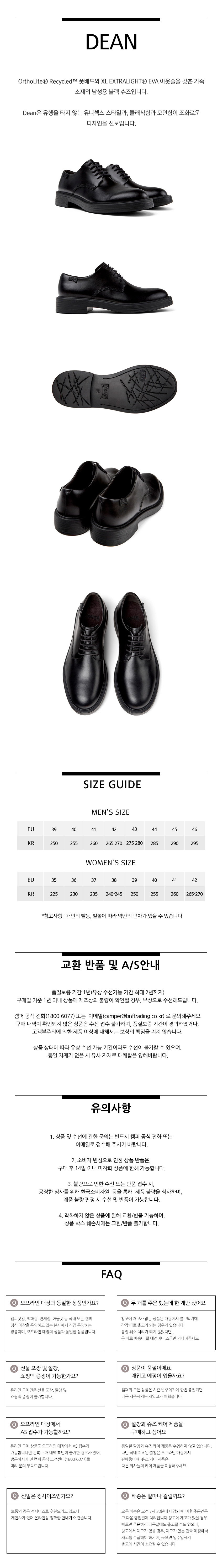 캠퍼 남성 딘 레더 블랙