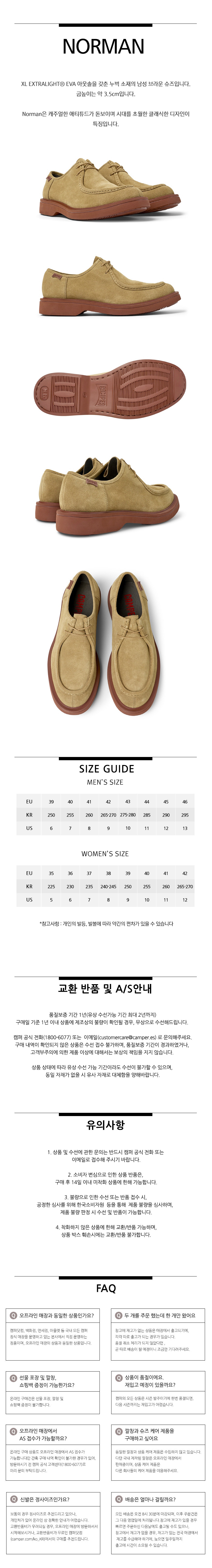 캠퍼 남성 노만 누벅 브라운