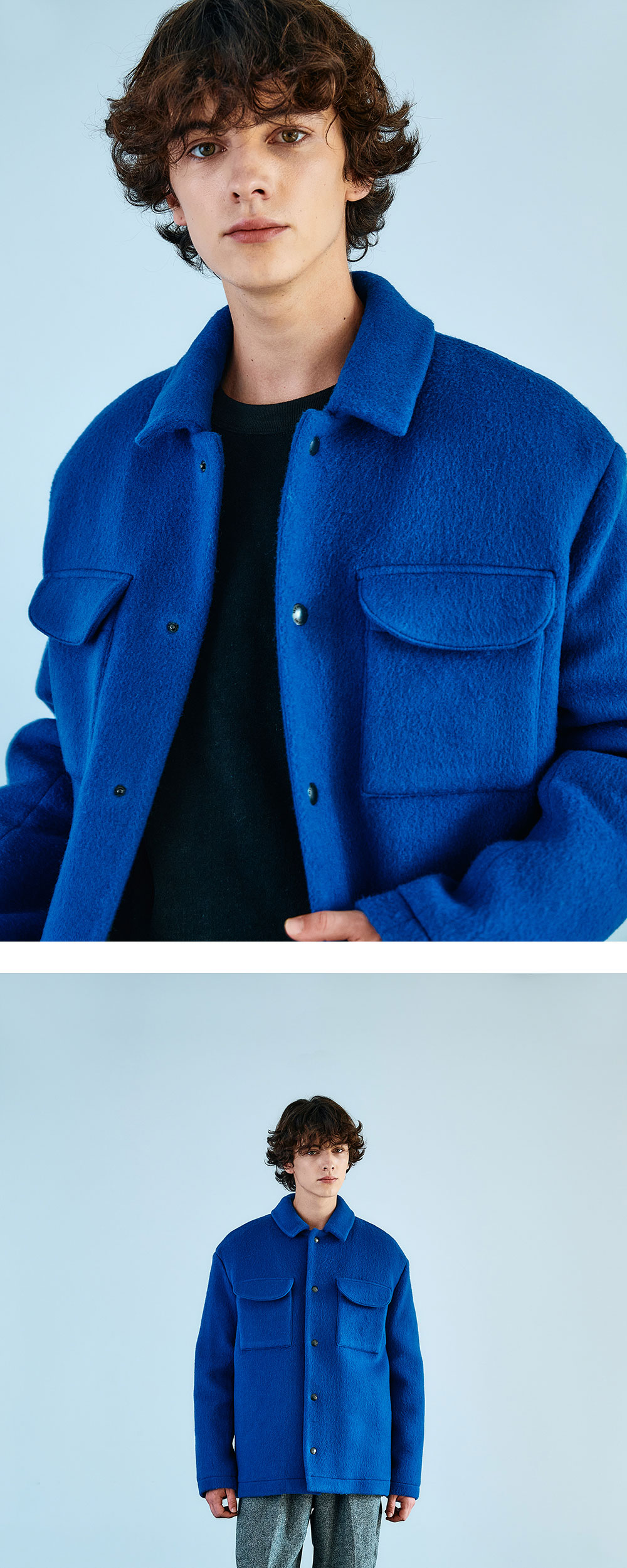 바이랑 울 블렌드 포켓 셔츠 자켓 블루