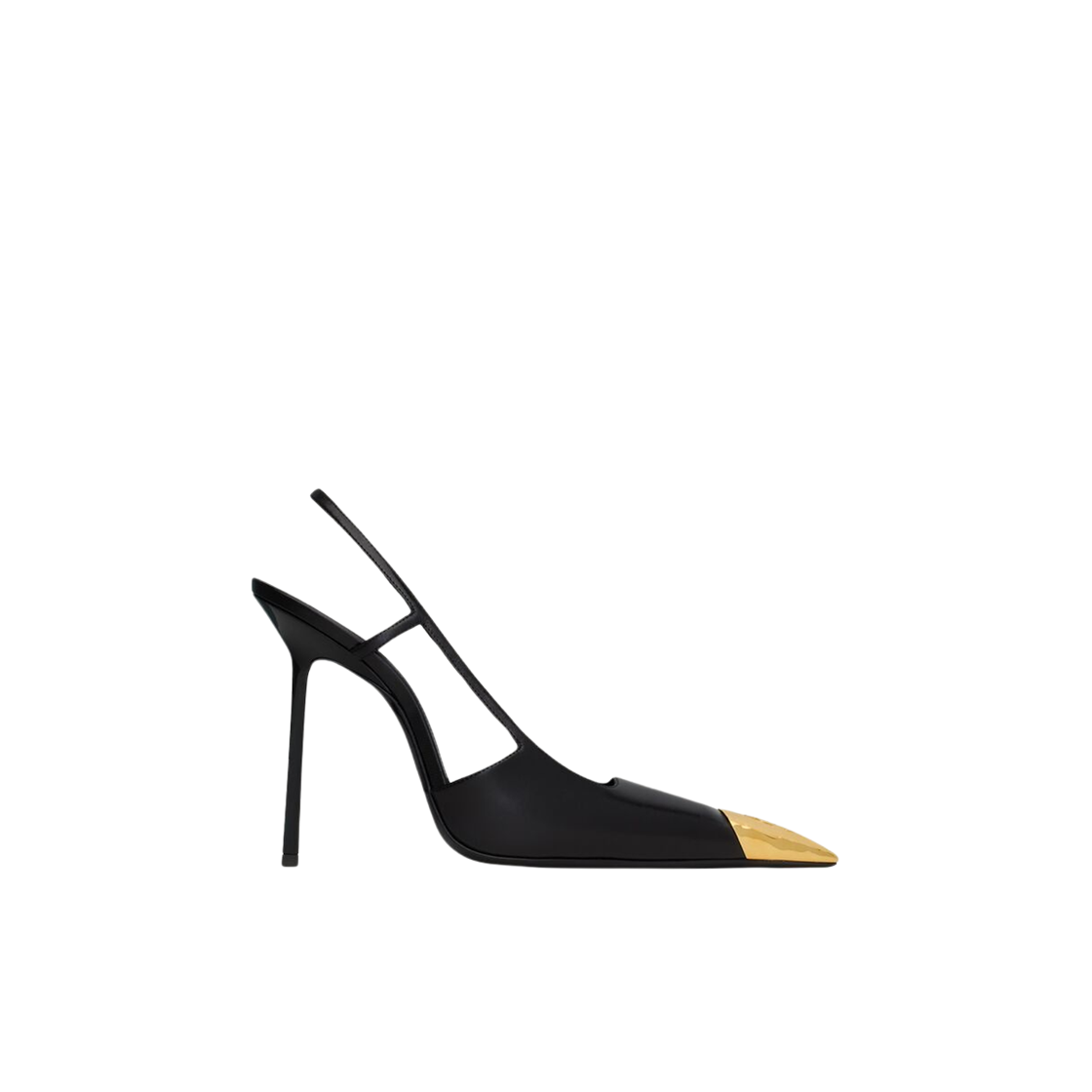 (W) Saint Laurent Jeanne Slingback Pumps In Smooth Leather Black Gold