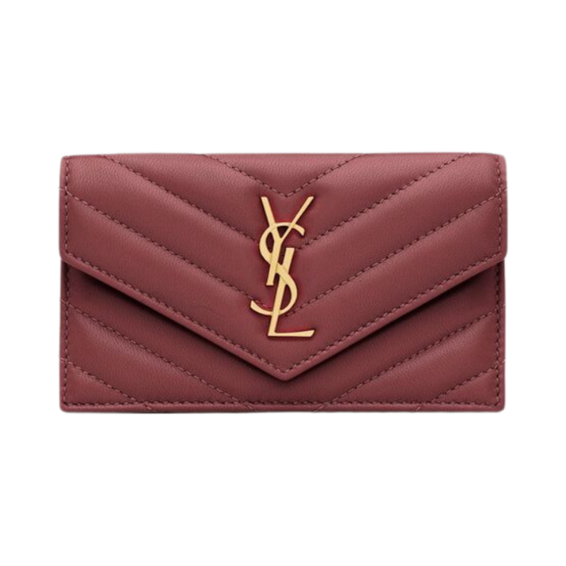 Saint Laurent Cassandre Matelasse Fragments Flap Card Case In Lambskin Rouge Merlot