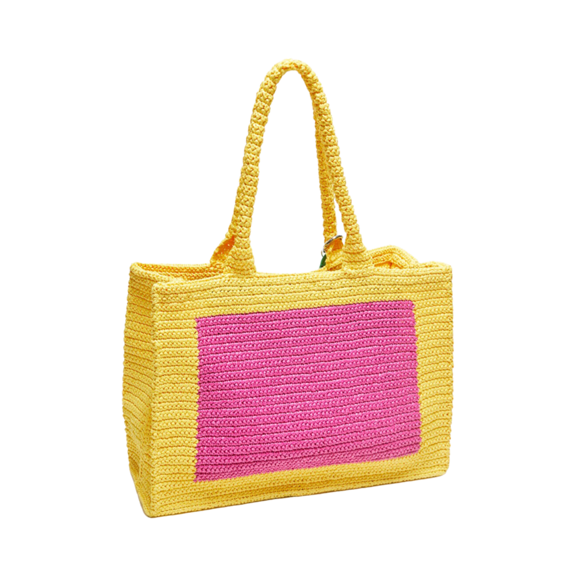 아크네 스튜디오 로고 스터드 토트백 핑크 옐로우