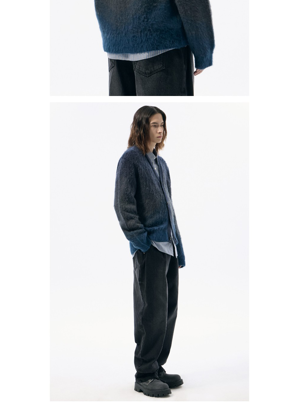 커스텀멜로우 그라데이션 가디건 블루